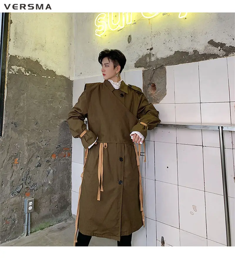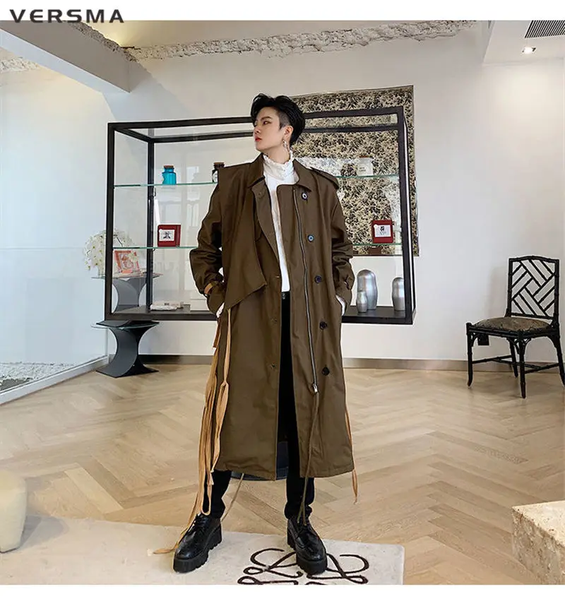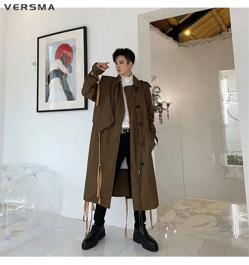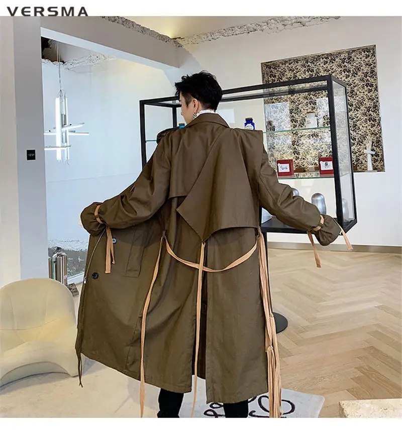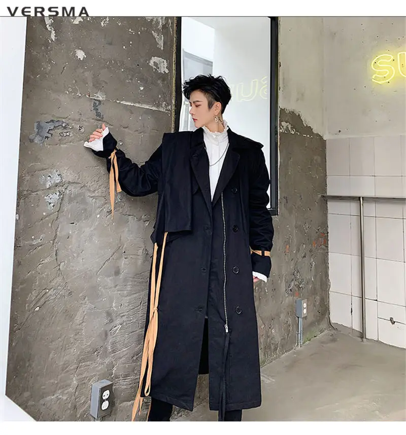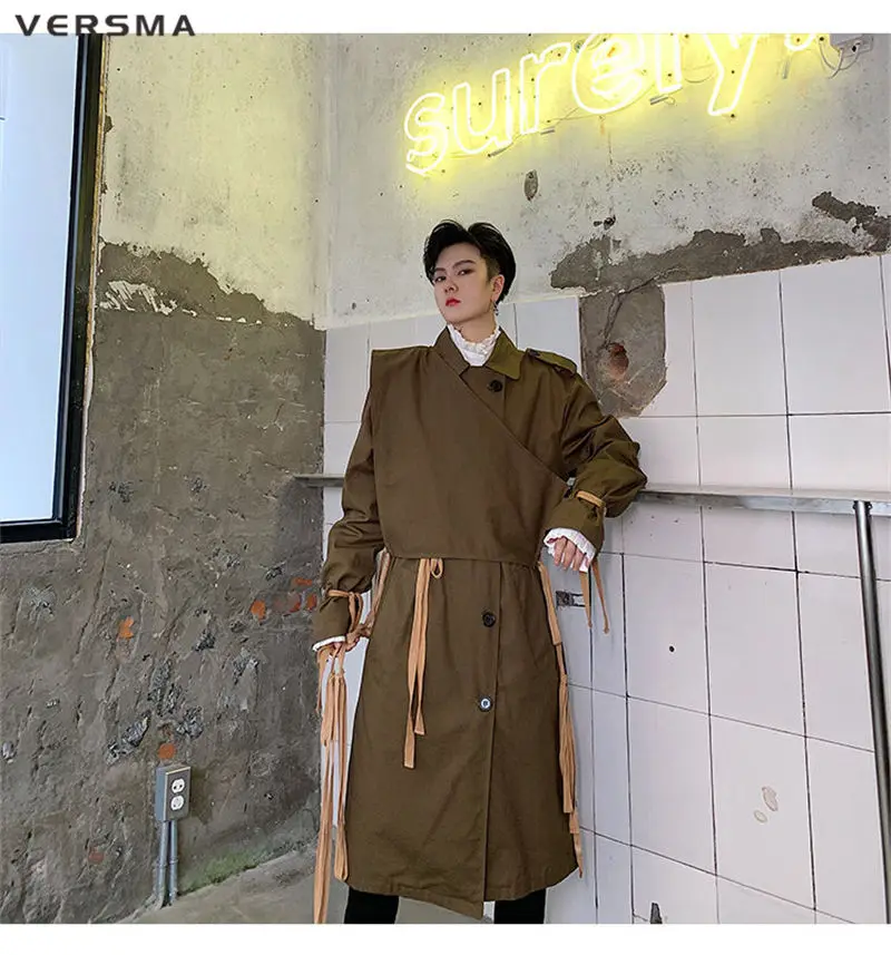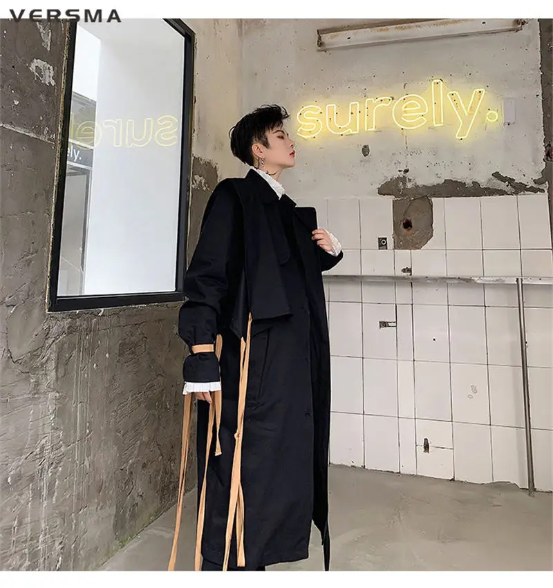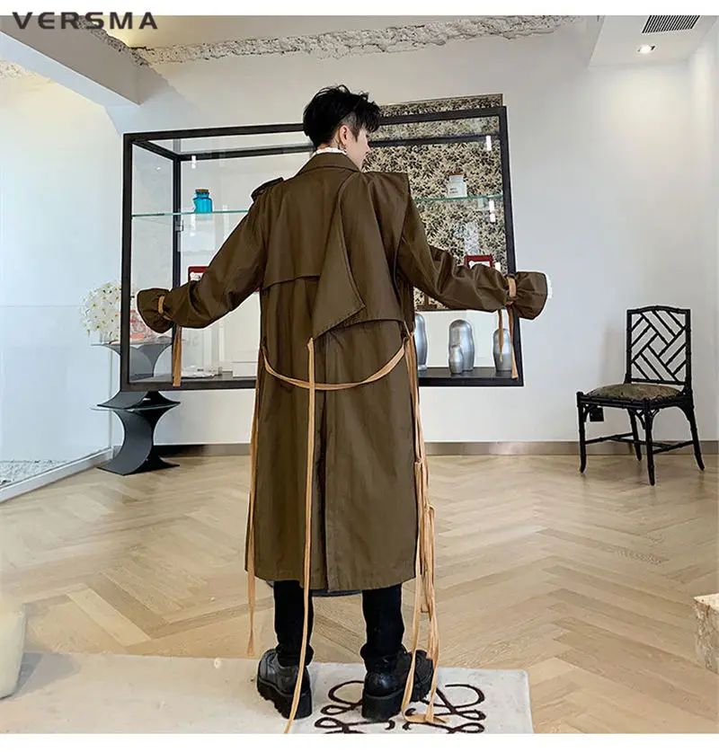Тренчкот мужской с лентами, в стиле Харадзюку, водостойкий, в готическом стиле