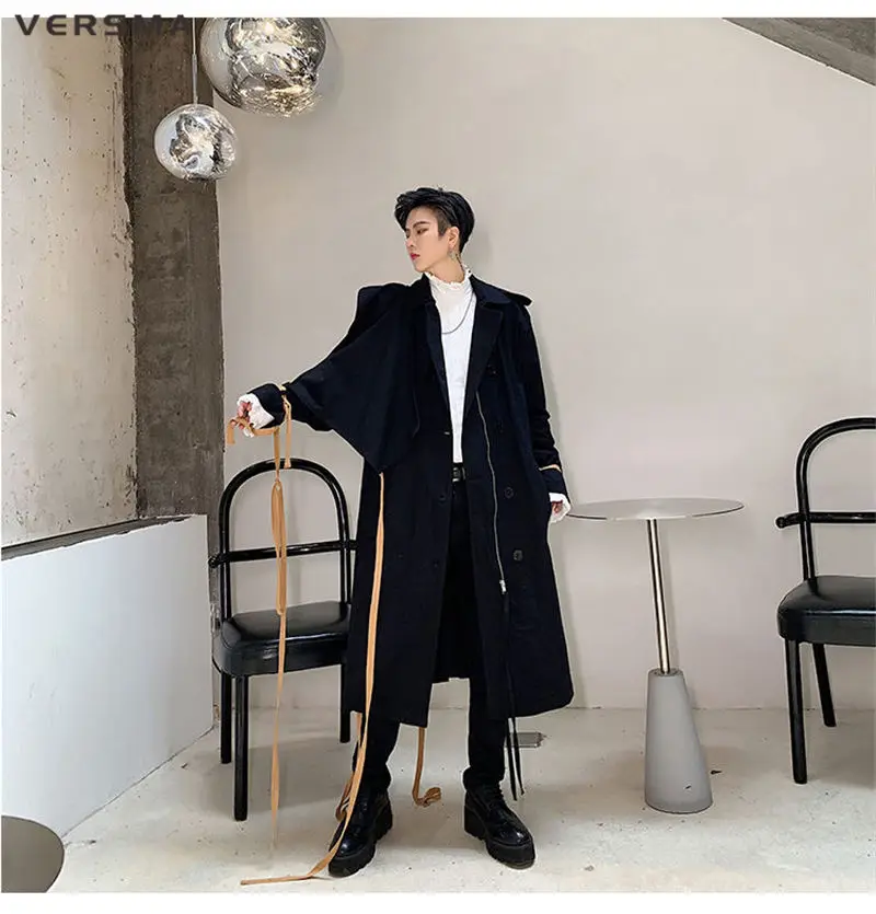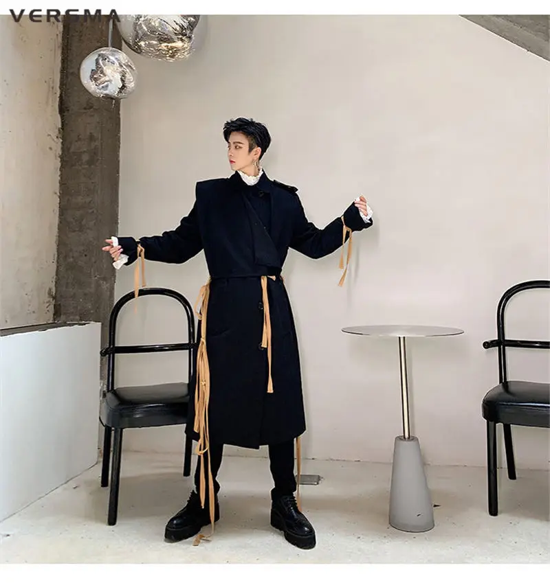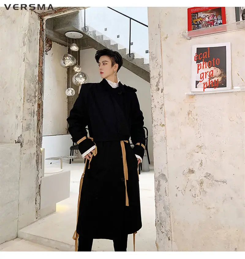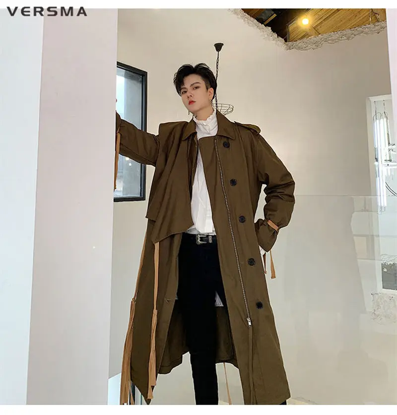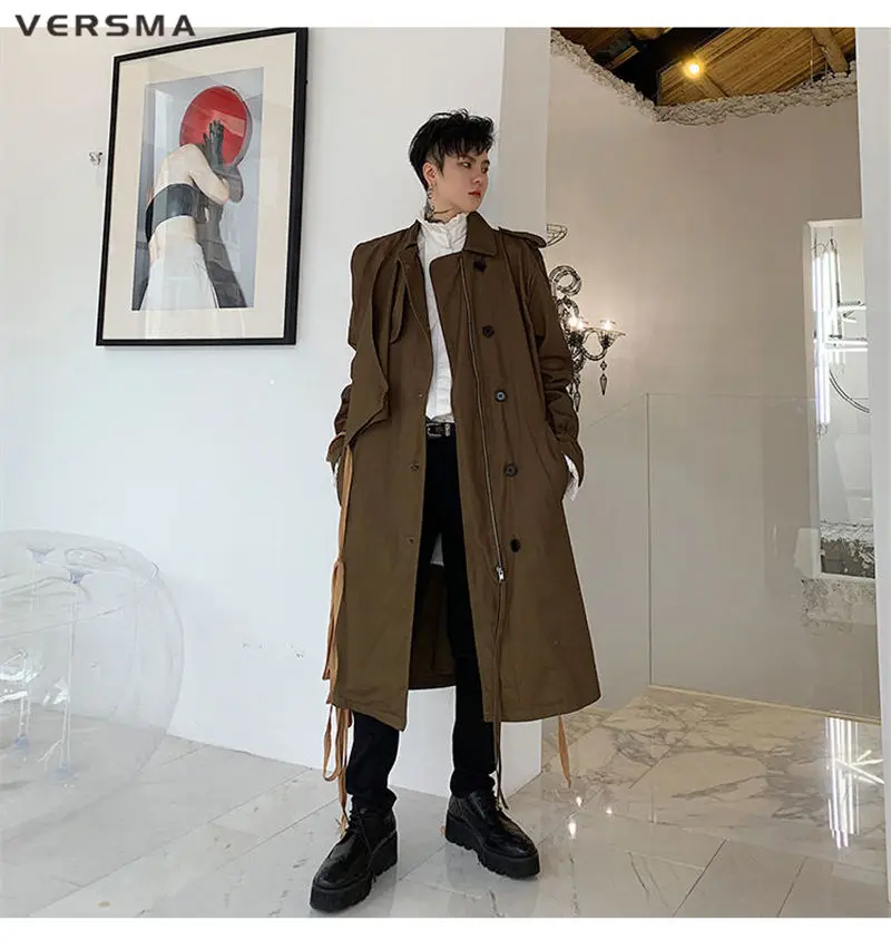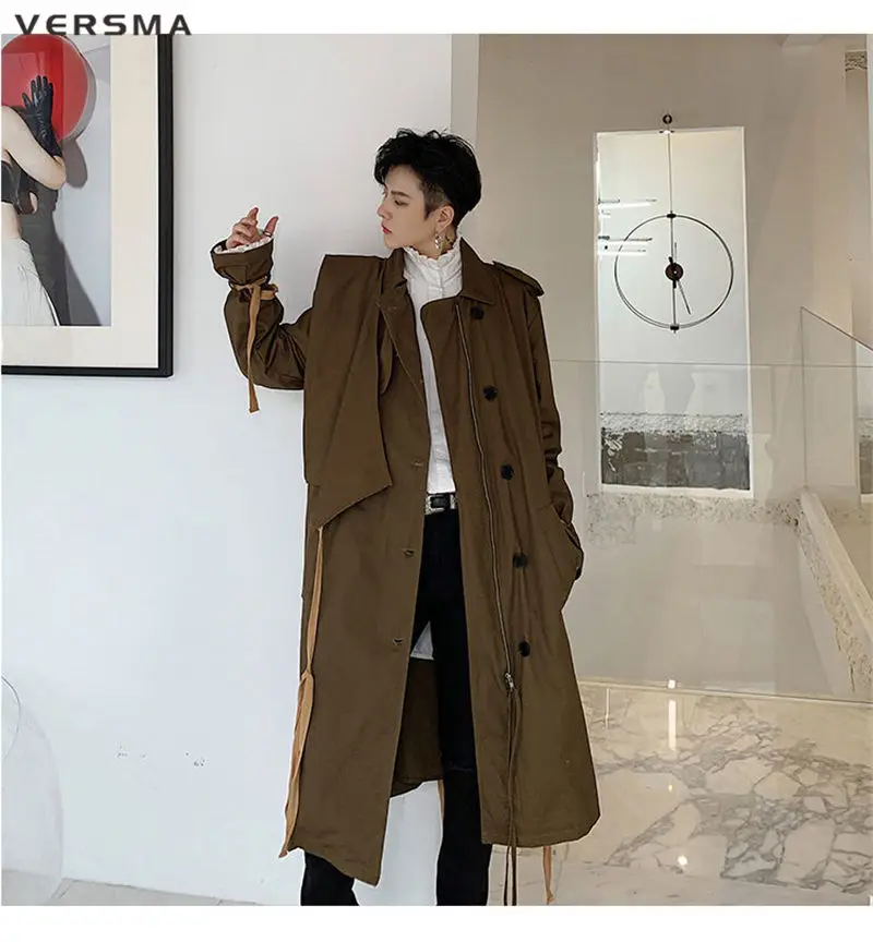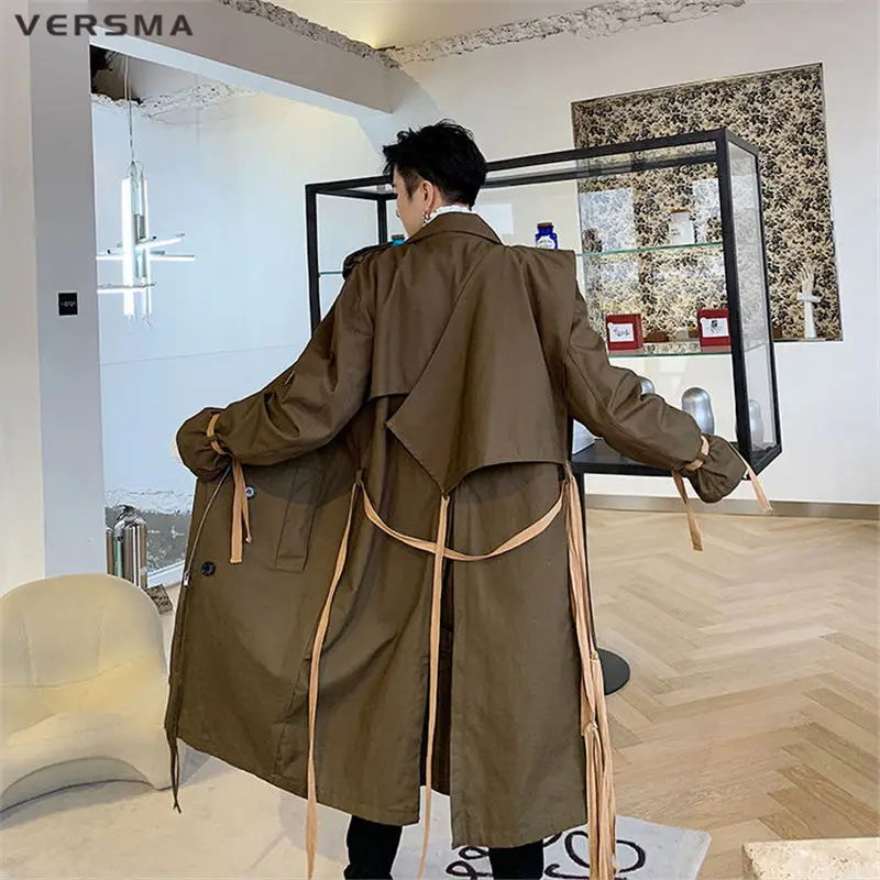 Тренчкот мужской с лентами, в стиле Харадзюку, водостойкий, в готическом стиле