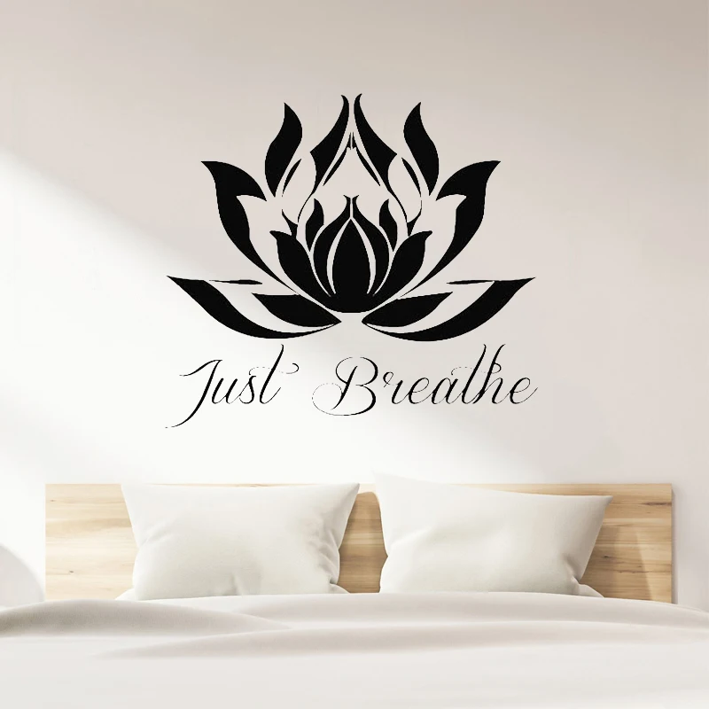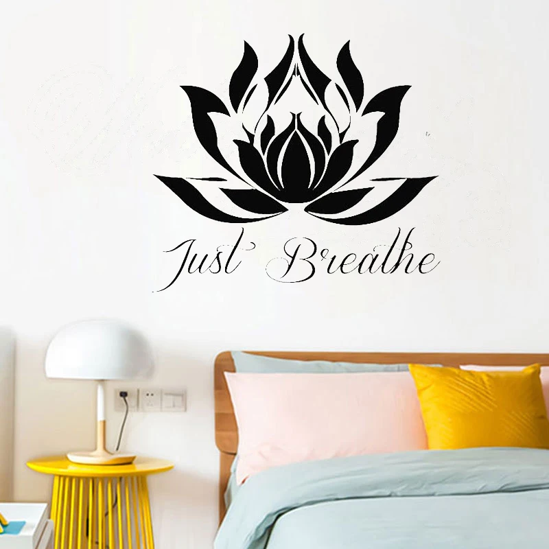 Чехол с изображением цветка мандалы настенные наклейки с цитатами просто дышать цветок лотоса виниловые наклейки в виде Фотообоев c переводными картинками Будды Настенная живопись медитации студии йоги плакат Декор