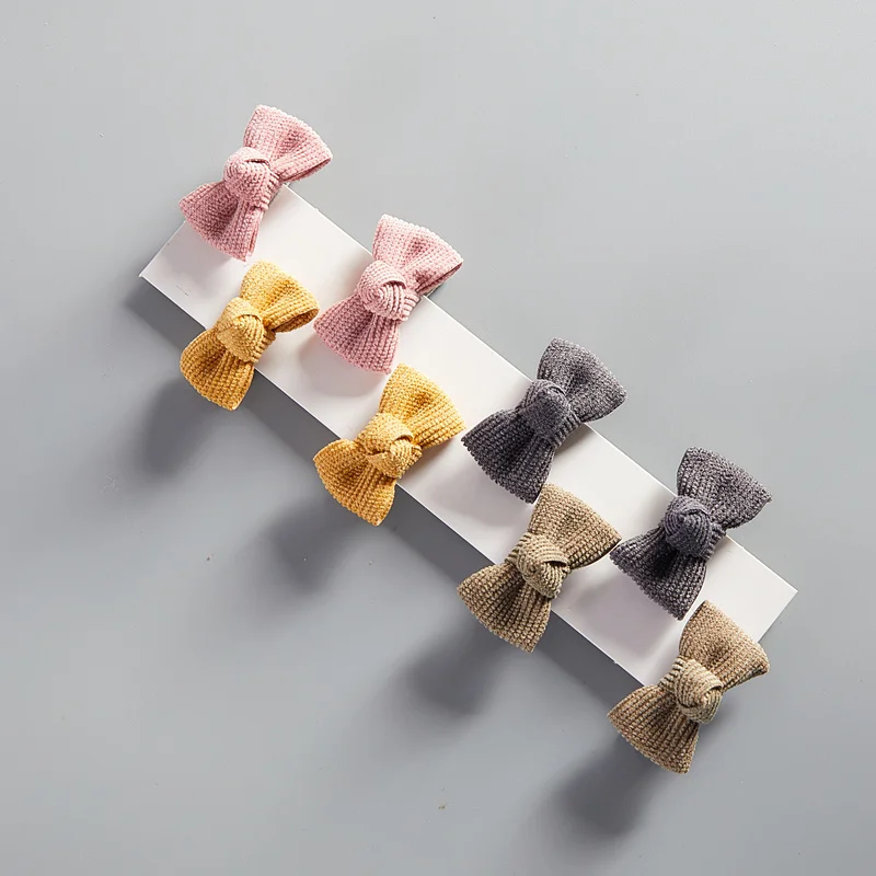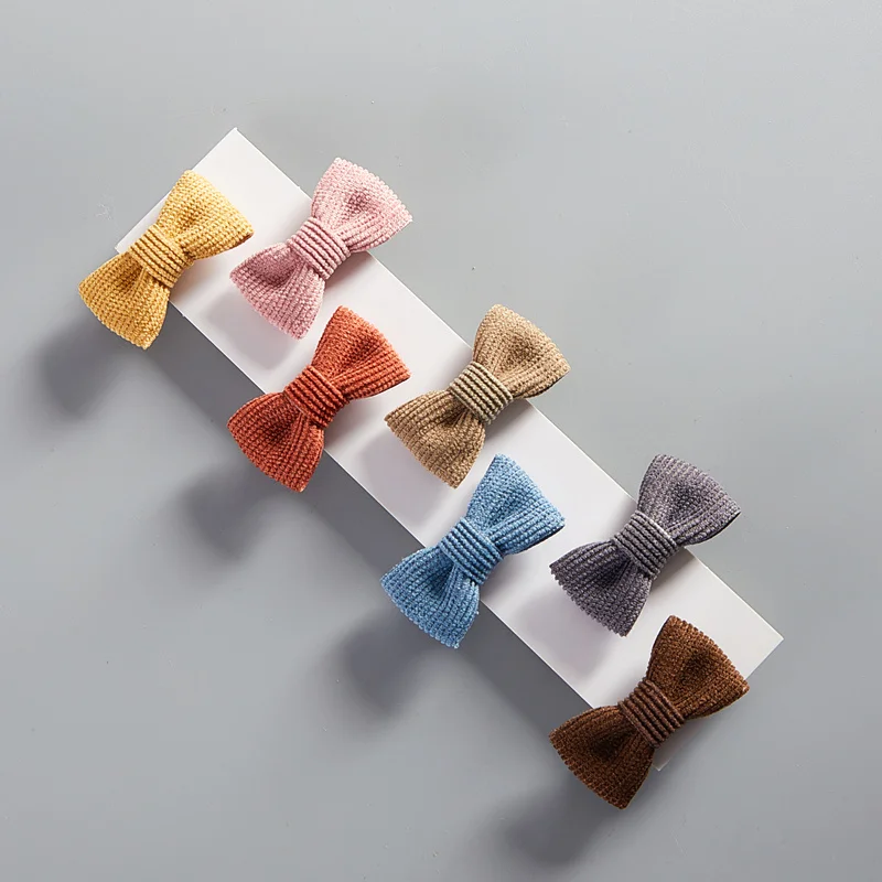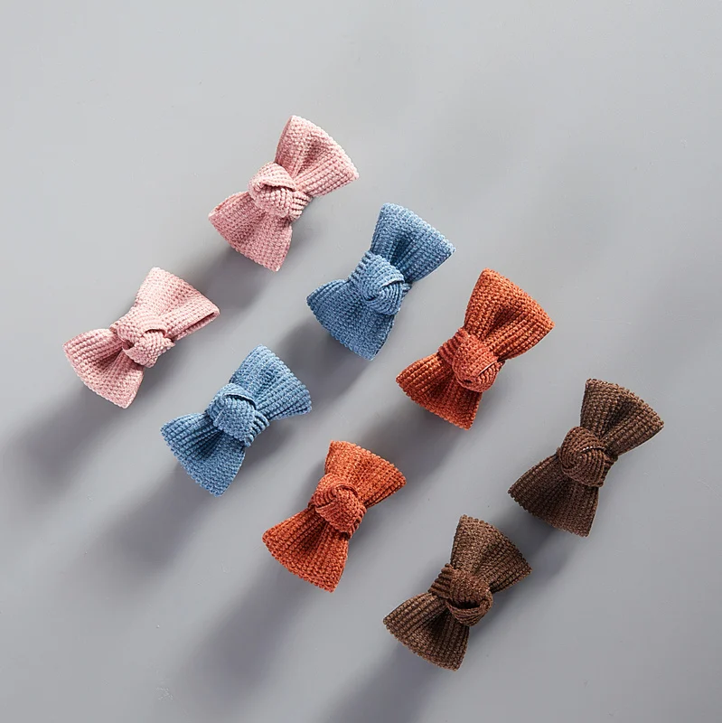 Набор заколок для волос для девочек, вельветовые заколки с бантами, ручной работы