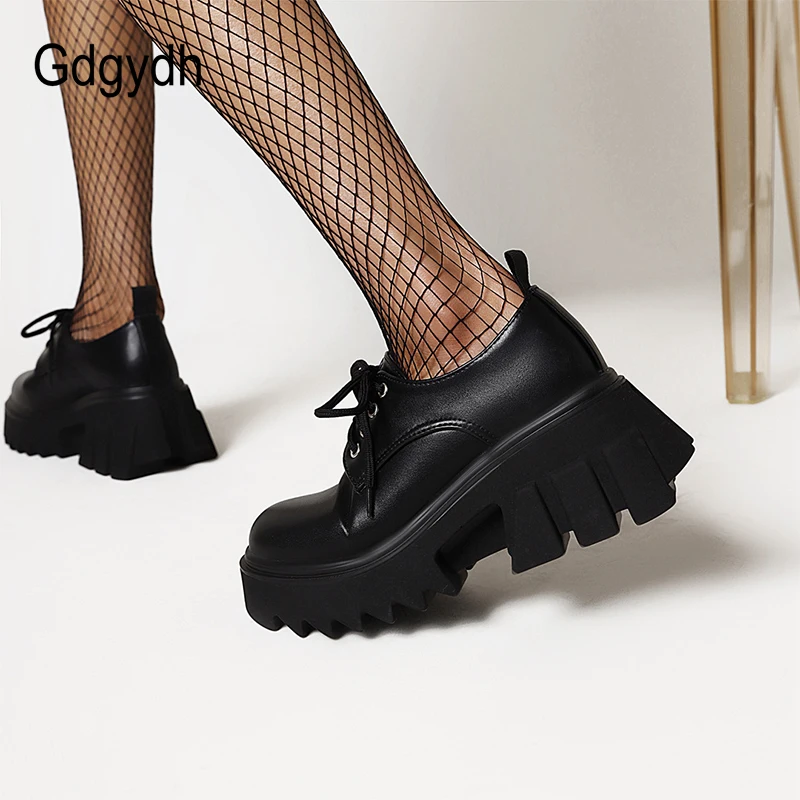 Женские туфли-лодочки Gdgydh, черные туфли-лодочки с круглым носком, на шнуровке, на платформе, готический стиль, высокий каблук, размера плюс 35-43, весна 2021