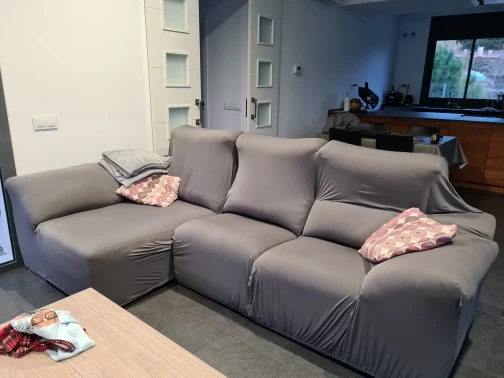 Encaja perfectamente con el sofa. La tela es algo fina pero suave y resistente y super elástica. Ha tardado 3 días en llegar solamente! Por el precio esta genial para cubrir un sofa. Lo recomiendo sin duda.