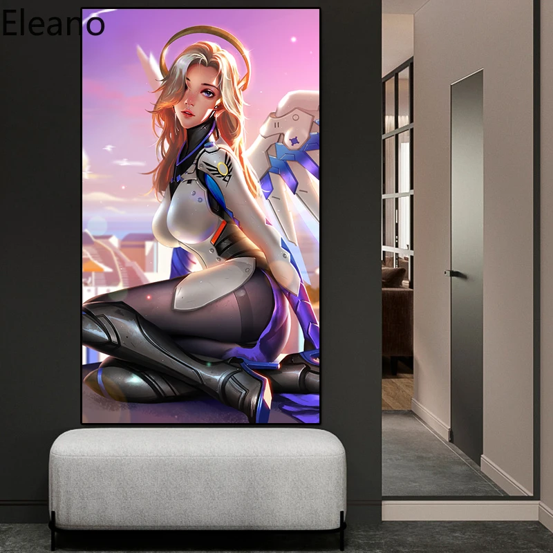 Постер с игровой надписью Overwatch на заказ, аниме Соблазнительная девушка, холст, живопись, эстетическое украшение комнаты, настенное искусство, фигурка, картина