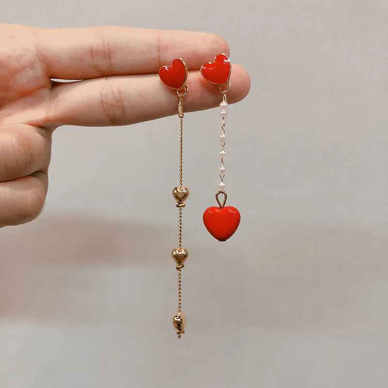 Женские серьги-цепочки в форме сердца, серьги с жемчугом, звездой, месяцем, женские модные аксессуары, красные Ушные Кольца для девушек в стиле панк, 2021