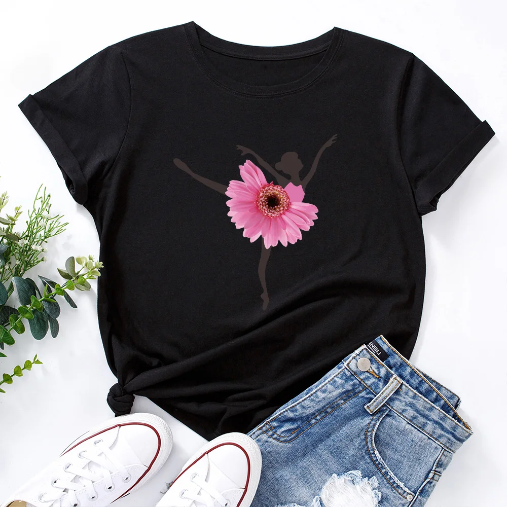 Женская футболка из 100% хлопка, Милая футболка с круглым вырезом и...