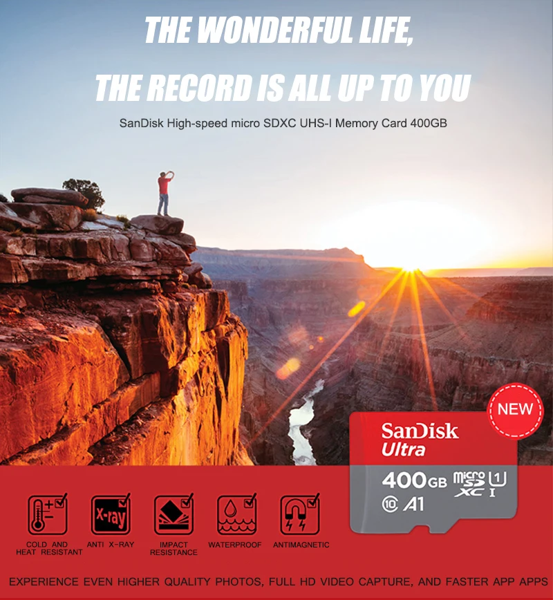 Карта памяти SanDisk Extreme high-speed mobile microSDXC UHS-I является водонепроницаемой/ударопрочной, устойчивой к холоду и рентгеновскому излучению. Вы можете наслаждаться приключением, не беспокоясь о долговечности карты памяти.