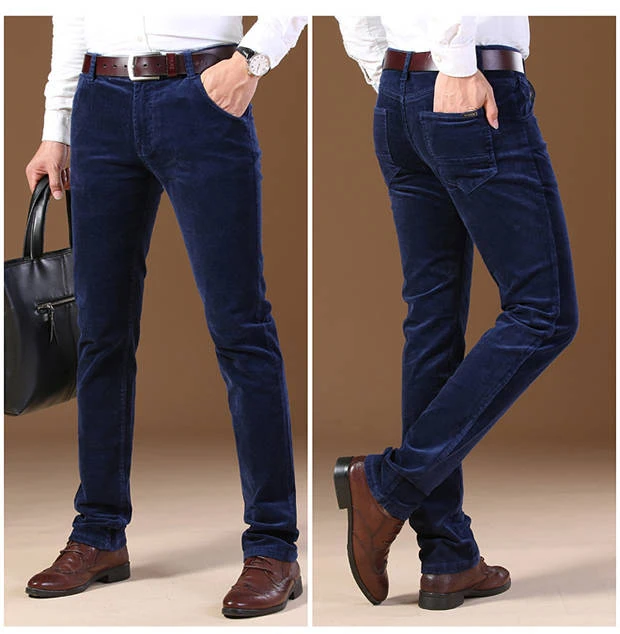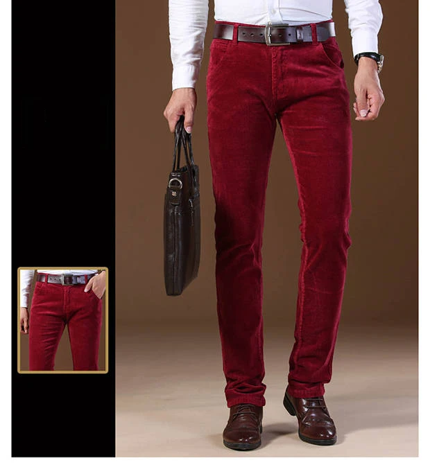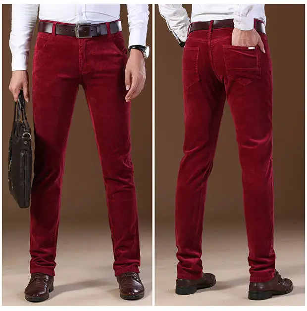 2021 новые мужские вельветовые повседневные штаны, деловой стиль, модный однотонный Цвет эластичные брюки средней посадки мужские кофе черного цвета, цвета красного вина