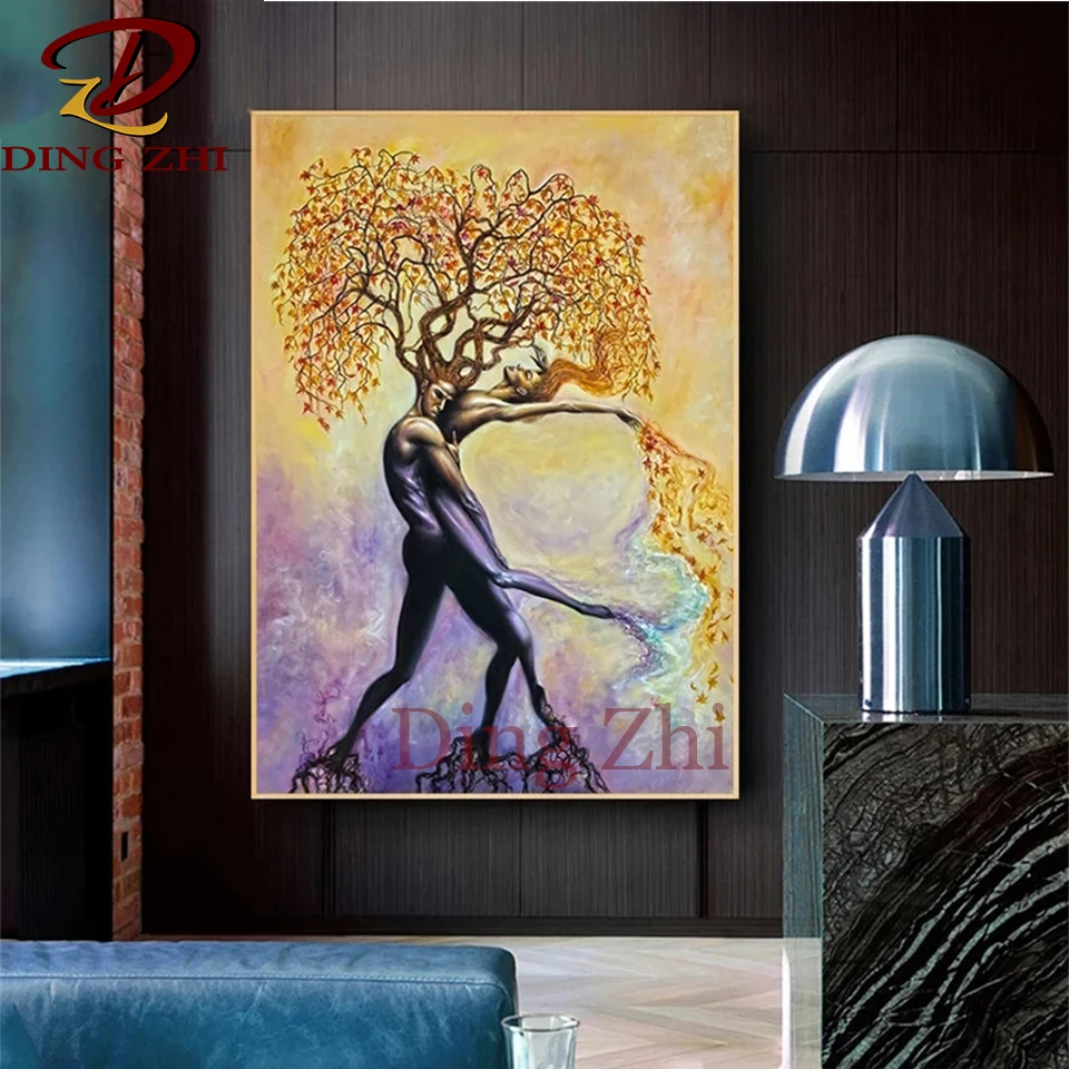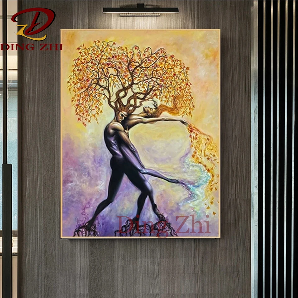 Абстрактное искусство 5D DIY Алмазная Картина Дерево человек пара обнимая крестиком набор вышивка полный квадратный круглый дрель мозаика ручной работы