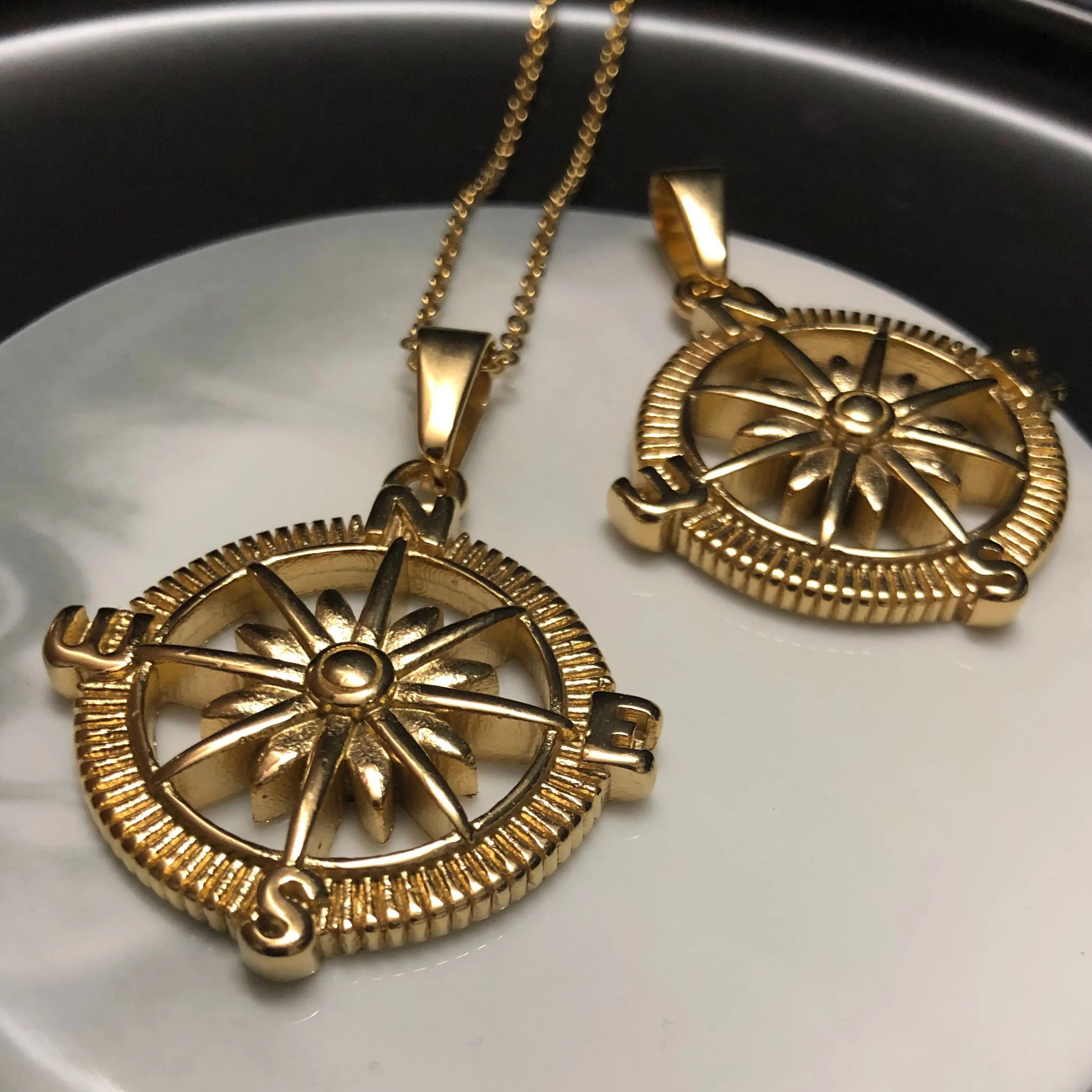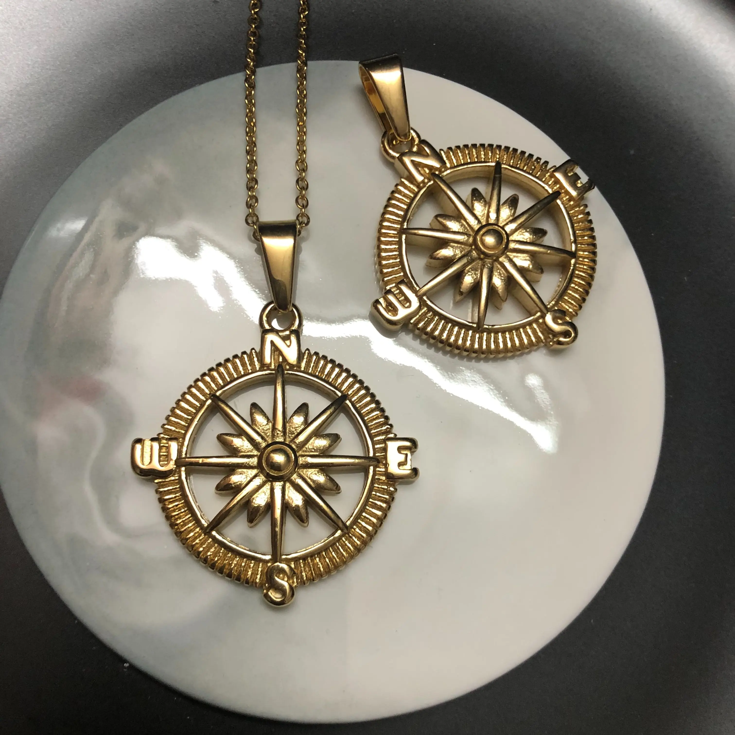 Модные ювелирные изделия в стиле хип-хоп, золотые искусственные круглые подвески в стиле панк, ожерелье из нержавеющей стали North ожерелье подвеска с компасом