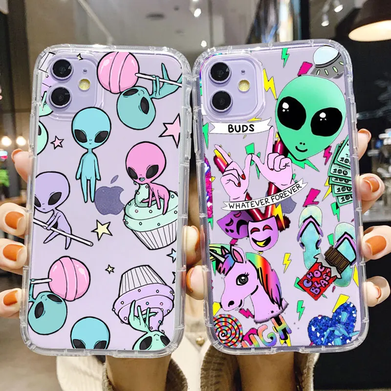 Чехол для iPhone 13 PRO, 11 Pro max, 6, 8, 7 plus, X, XS MAX, XR, силиконовый, с изображением пришельцев