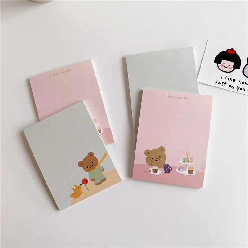 Записная книжка Ins в Корейском стиле с милым мультяшным медведем, 50 листов, креативные Длинные Стильные офисные записные книжки, бумажные принадлежности для кавайные канцелярские школьные