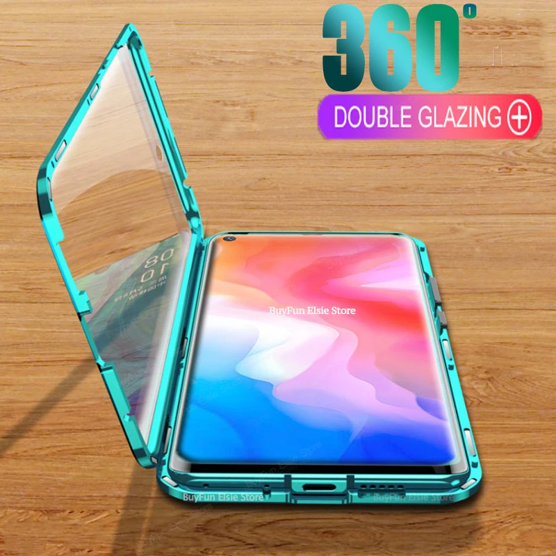 Магнитный металлический двухсторонний стеклянный чехол для Oppo Rea...