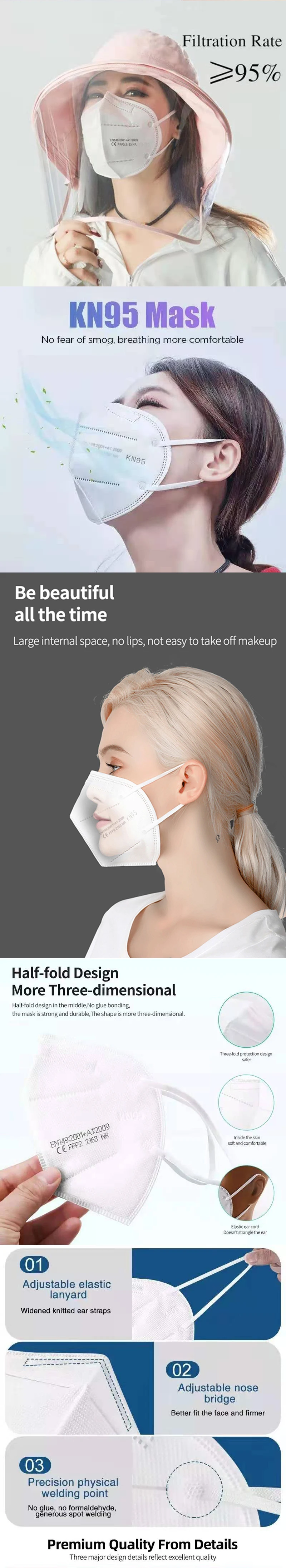 5-слойная маска для лица KN 95, респиратор FPP2 CE, защитные маски ...
