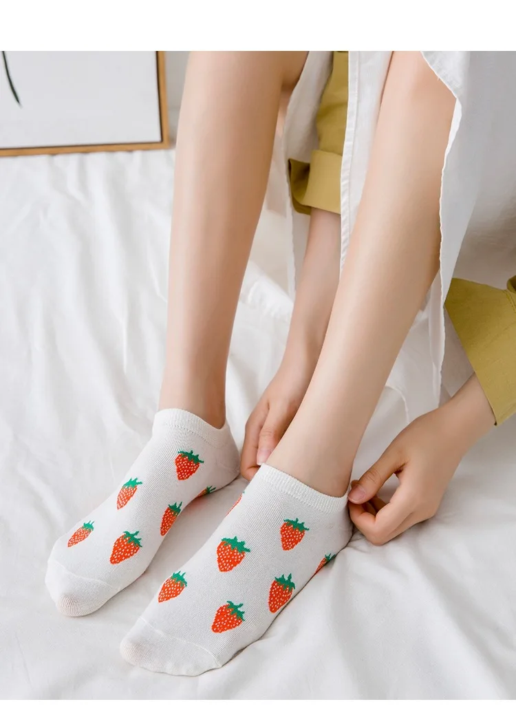 Носки до щиколотки, милые забавные Носки с рисунком персикового клубники, милые дизайнерские мягкие носки в стиле Харадзюку