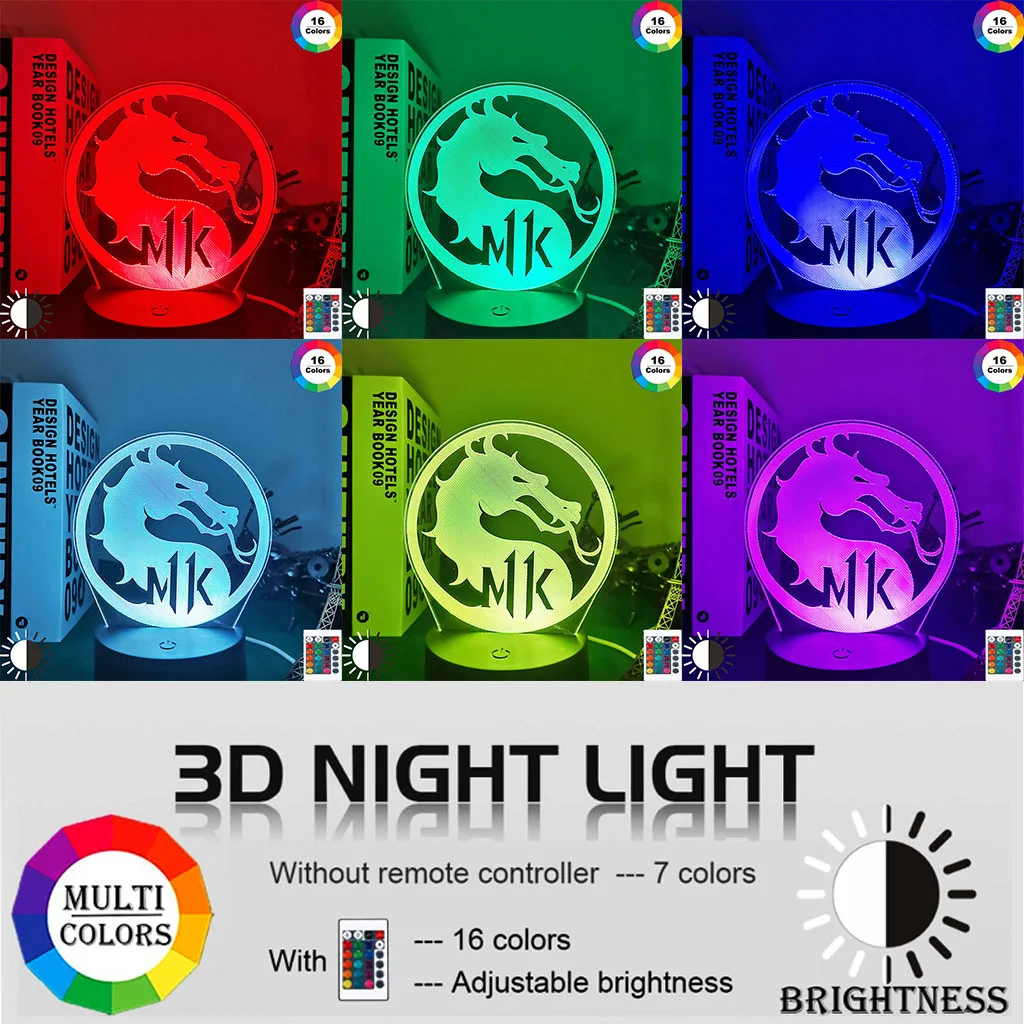 Игровая консоль Mortal Kombat 11 Logo, детский светильник, светодиодный сенсорный датчик, меняющий цвет, светильник для детской спальни, декоративная лампа, подарок