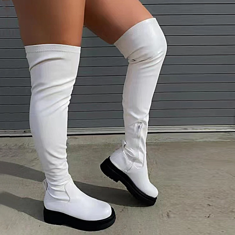 Новые брендовые Нескользящие сапоги выше колена на платформе с эластичной рифленой подошвой женская обувь черного и белого цвета модная обувь для отдыха, размер 43