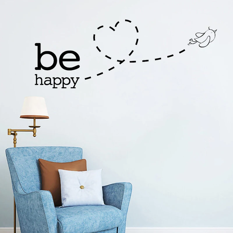 Happy стены Стикеры летящей птицы сердце виниловые наклейки в виде Фотообоев c переводными картинками детская комната Спальня украшения Happy котировки фразу обои настенные для гостиной Декор