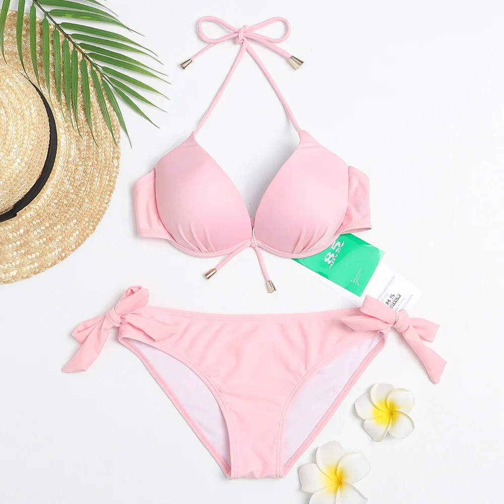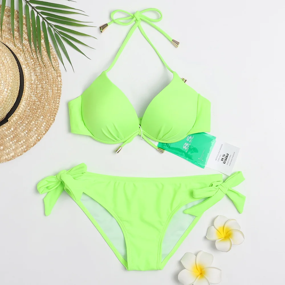 Бикини, новинка 2021, купальный костюм, женский сексуальный пляжный купальный костюм с пуш-ап, Женский бандажный мини-бикини с открытой спиной, 85gjiycw