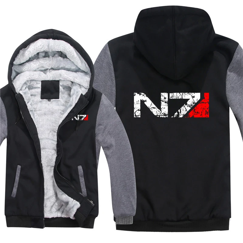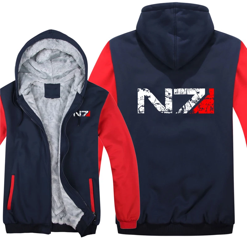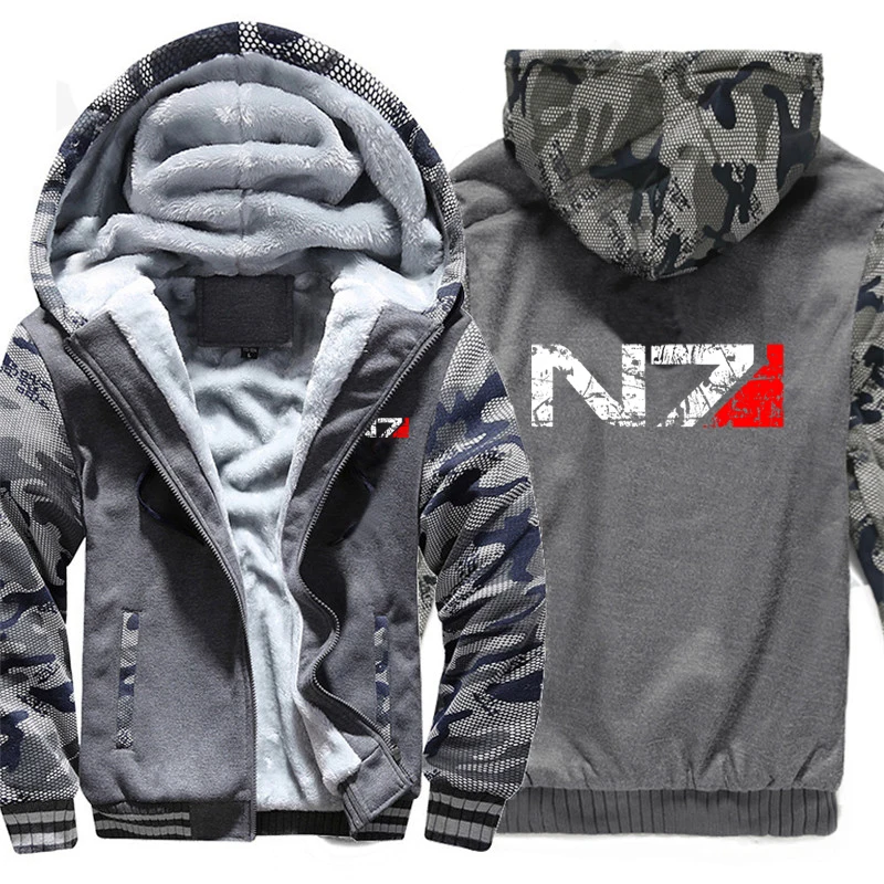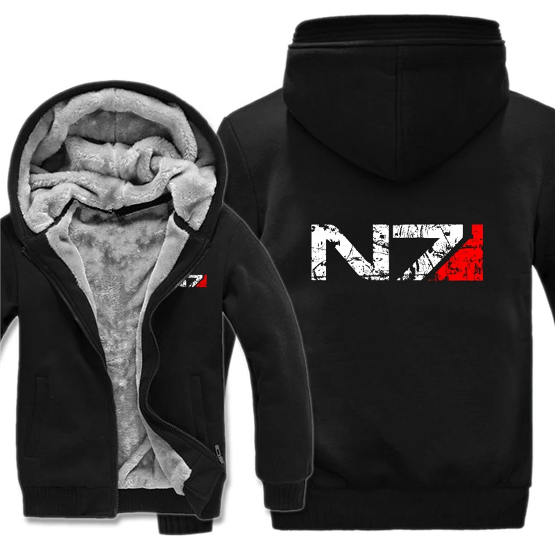 Толстовка N7 с капюшоном Mass Effect, модная зимняя мужская куртка с шерстяной подкладкой, Толстая Толстовка N7, пальто