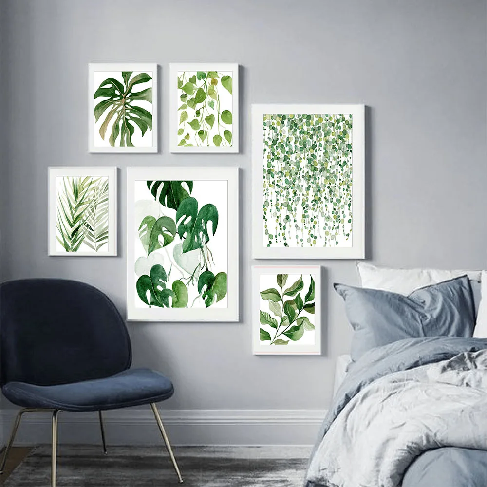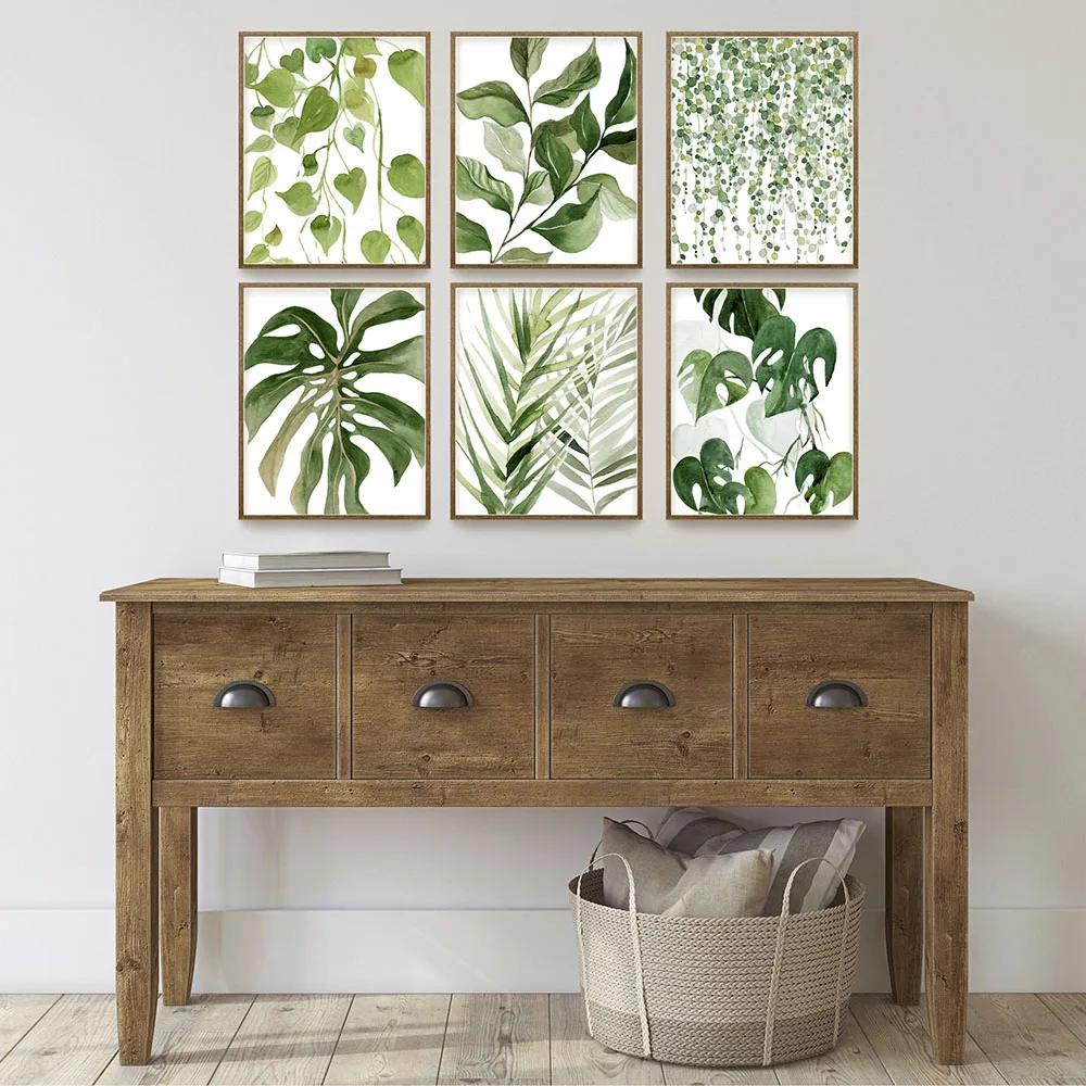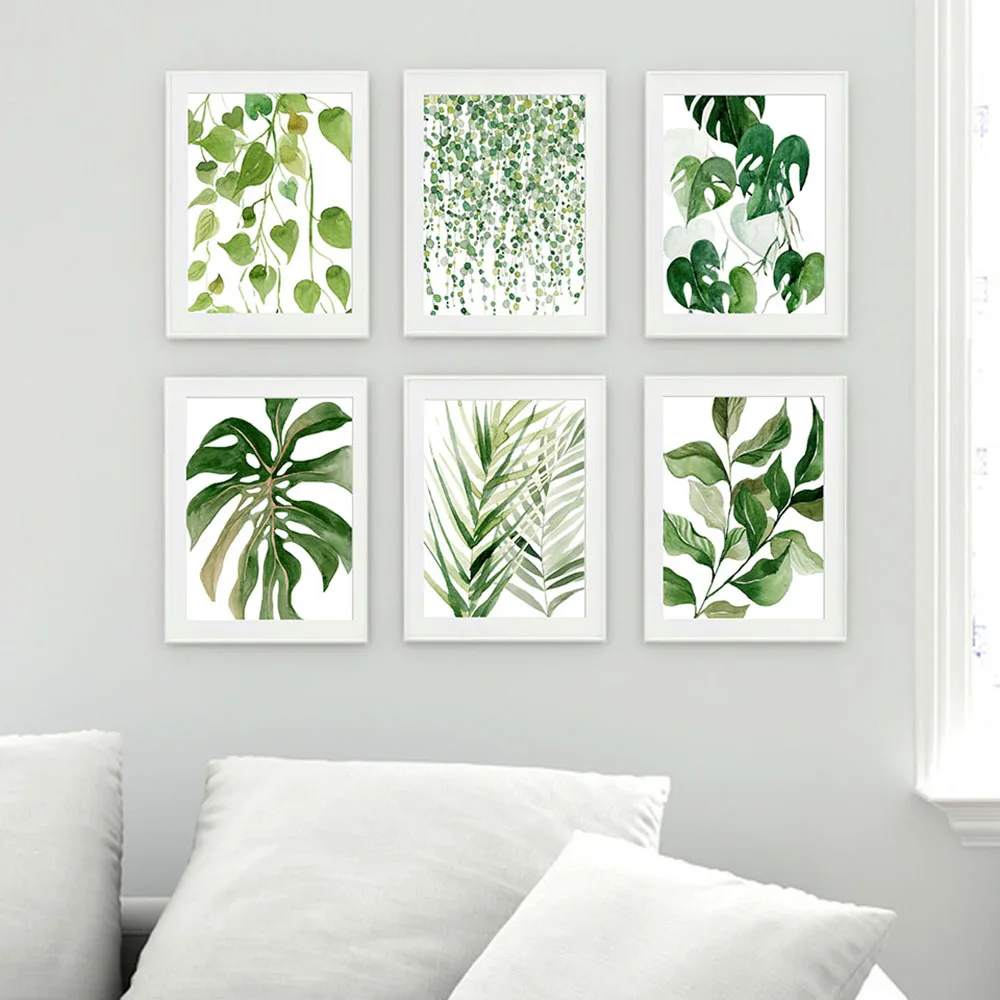 Скандинавская Минималистичная листва акварельный плакат с зелеными растениями настенная Художественная печать на холсте картина для современной спальни домашний декор