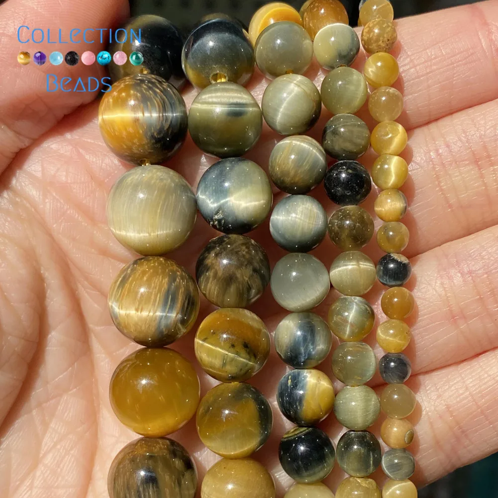 Бусины из натурального камня с изображением тигрового глаза, Свободные Круглые бусины для изготовления ювелирных изделий, 4-12 мм, аксессуары для браслетов, 15 дюймов