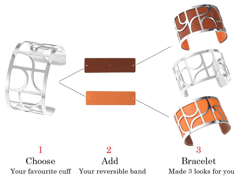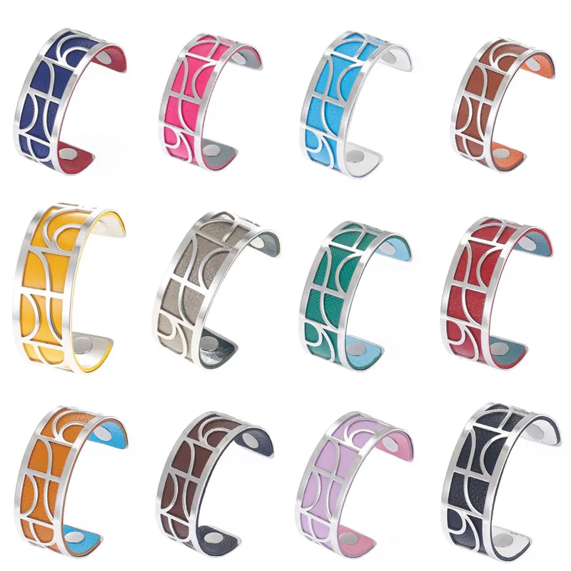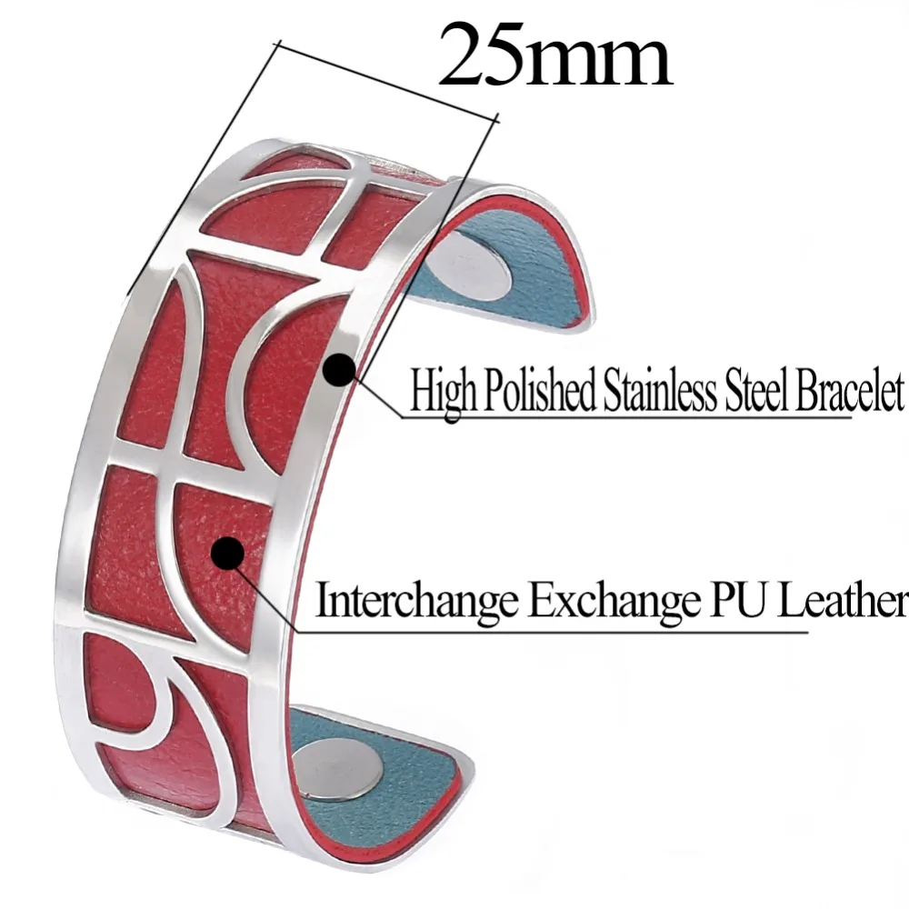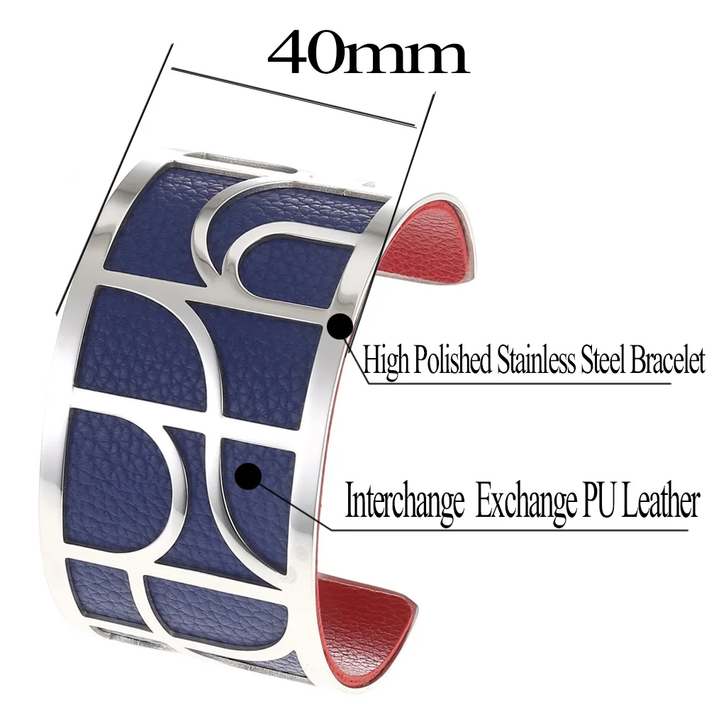 Женский Браслет-манжета из нержавеющей стали, со сменной кожей