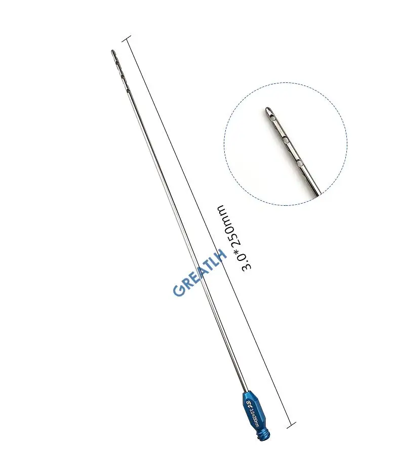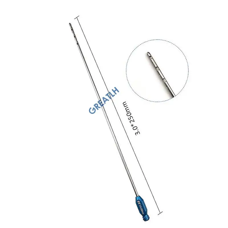 Пористый Luer замок канюля для липосакции с многоразовой ручкой, инструменты липосакции 25 см x 3,0 мм