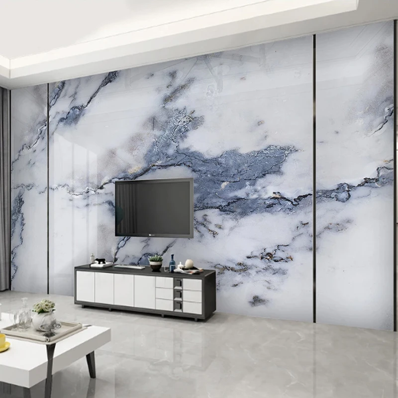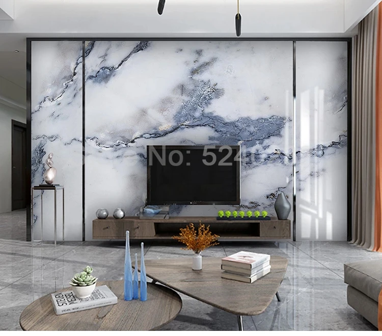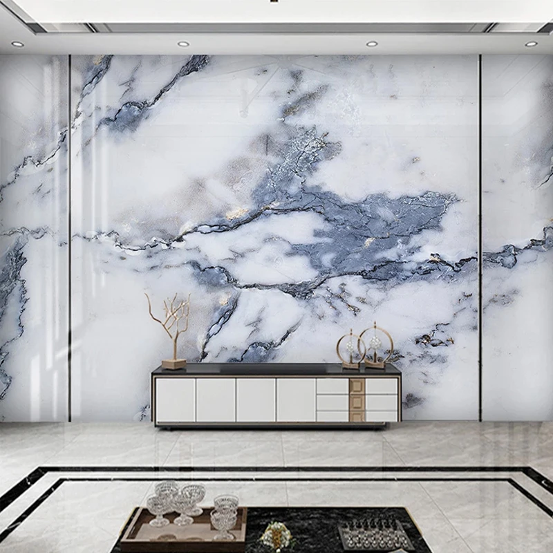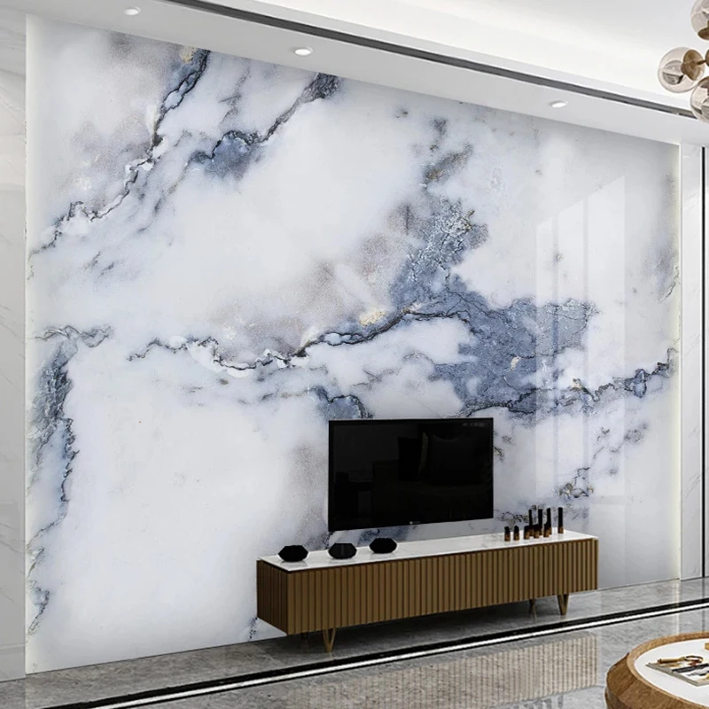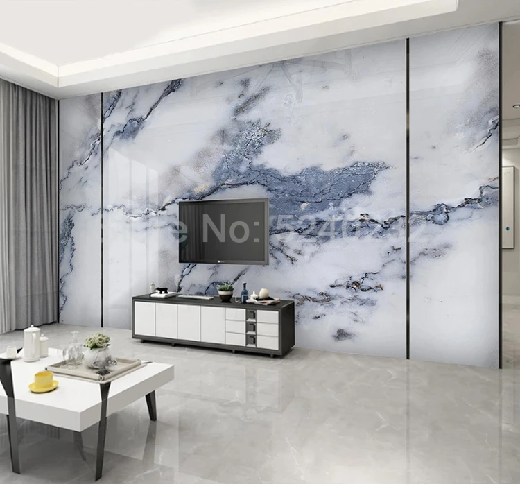 Пользовательские 3D росписи современный белый синий мраморный узор ТВ фон фото настенная живопись для гостиной спальни водонепроницаемые обои