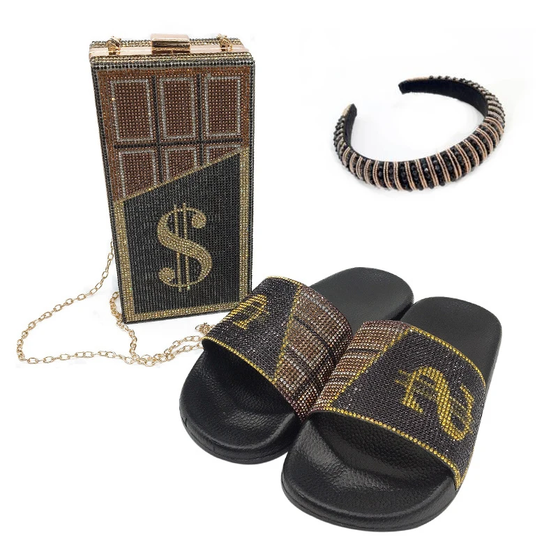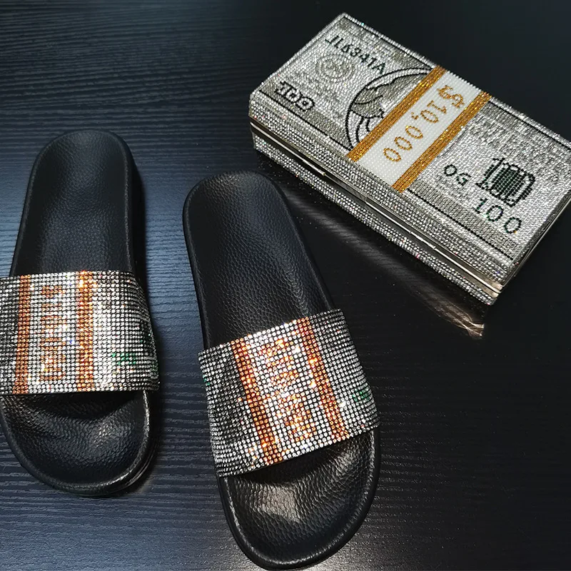 Женская модная обувь с разноцветными бриллиантами в долларах; Женские уличные сандалии; Шикарные шлепанцы; Стразы; Кошелек с блестящими кольцами