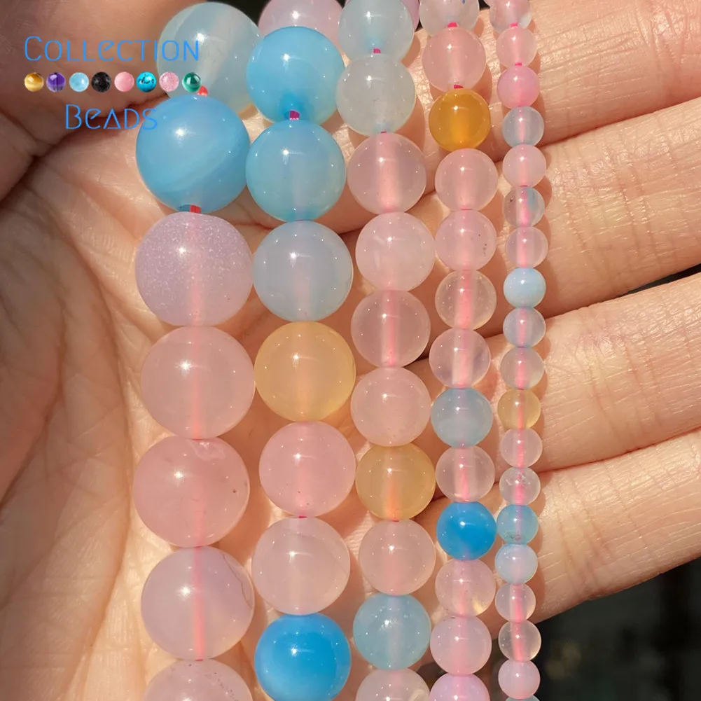 Натуральный морганит Агаты камень разделитель Свободные Круглые бусины для изготовления ювелирных изделий 4-12 мм Diy Браслеты Аксессуары 15"