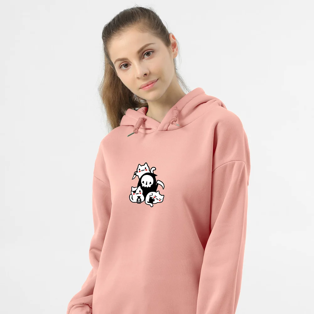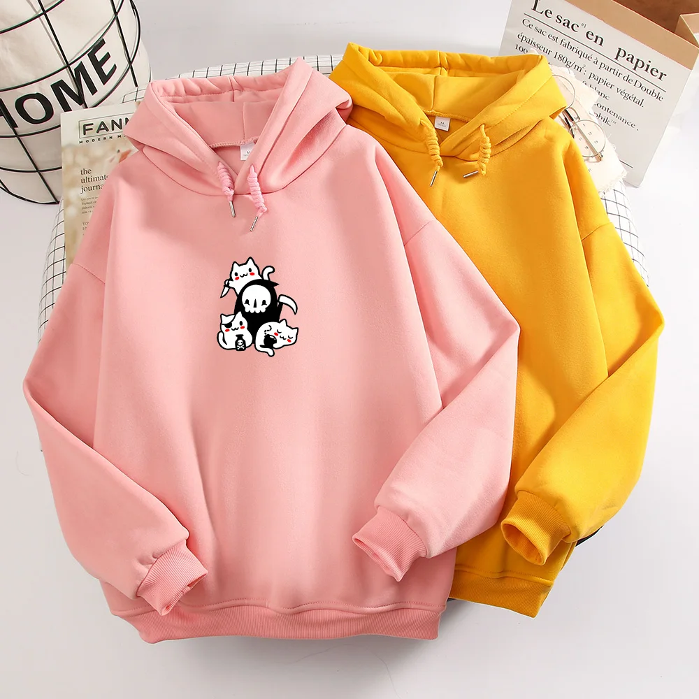 Толстовка Женская, зимняя, оверсайз, с мультяшным принтом черепа
