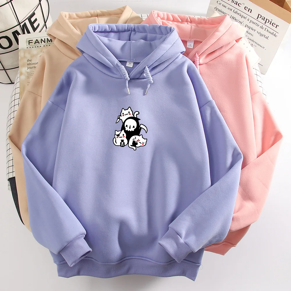 Толстовка с принтом черепа, зимняя Толстовка Оверсайз с котом, фиолетовая Женская Эстетическая одежда в готическом стиле, Свитшот в стиле Харадзюку для девочек Материал: полиэстерСтиль: Повседневный, Вес: 450 г, Воротник: с капюшоном