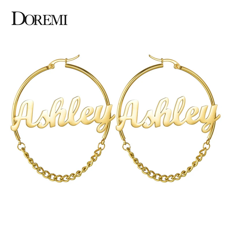 Круглые серьги DOREMI 30-100 мм с именем на заказ, женские серьги и...