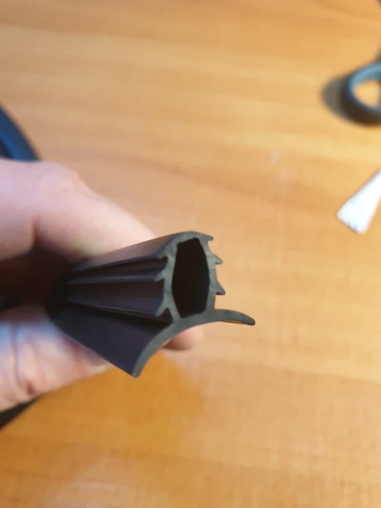уплотнитель соответствует описанию, как на картинке. Ленту упаковали в тонкий пакет. Вовремя транспортировке он порвался, но сам уплотнитель не пострадал. трек отслеживался до пересечения границы. Продавца рекомендую.