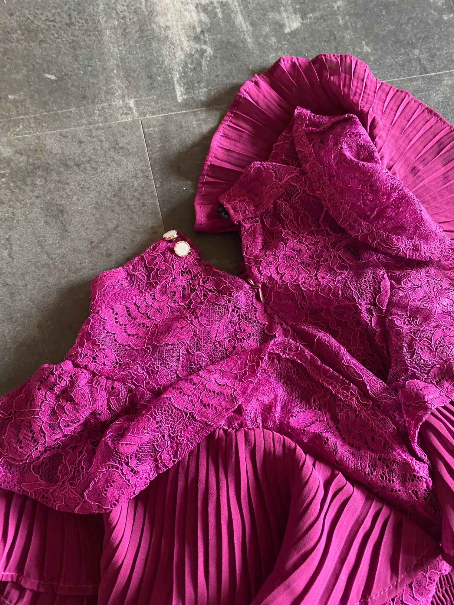 Женское кружевное платье-миди, винтажное, фиолетовое, зеленое, красное, с круглым вырезом и оборками, приталенное, с высокой талией, весна-осень, 2021