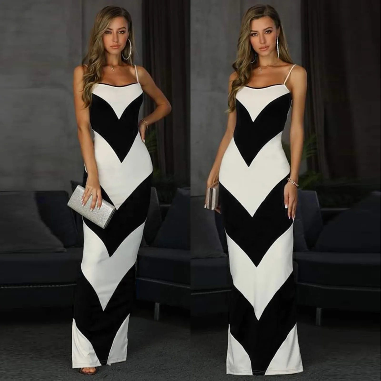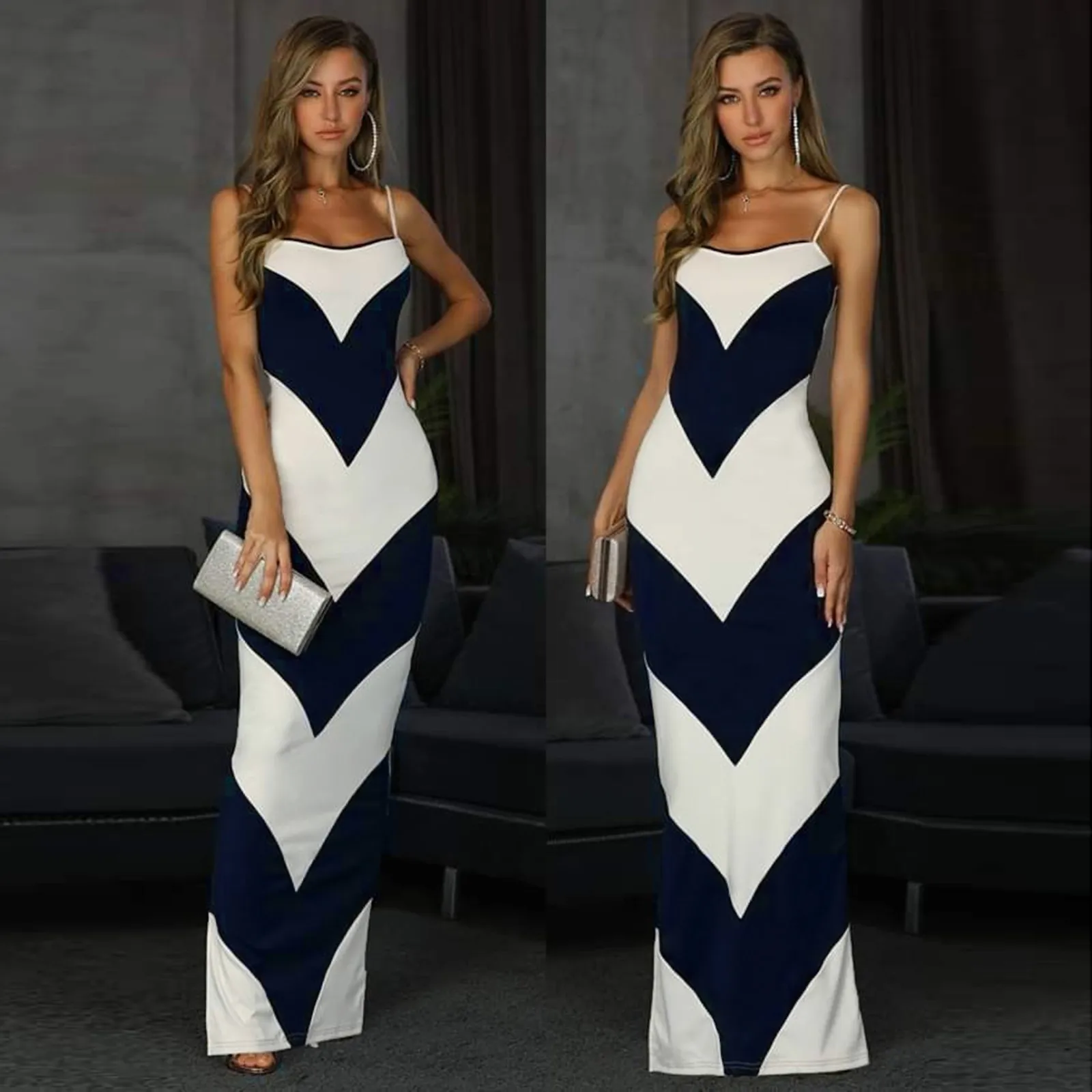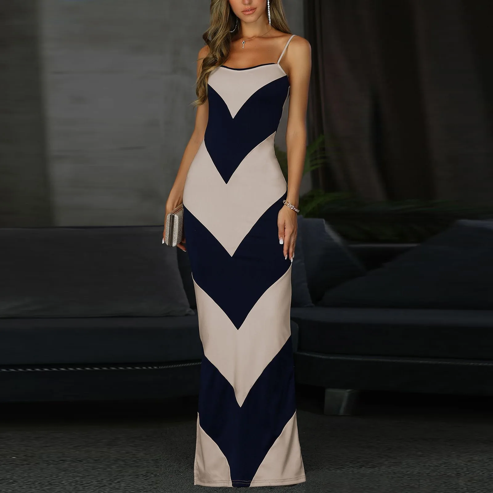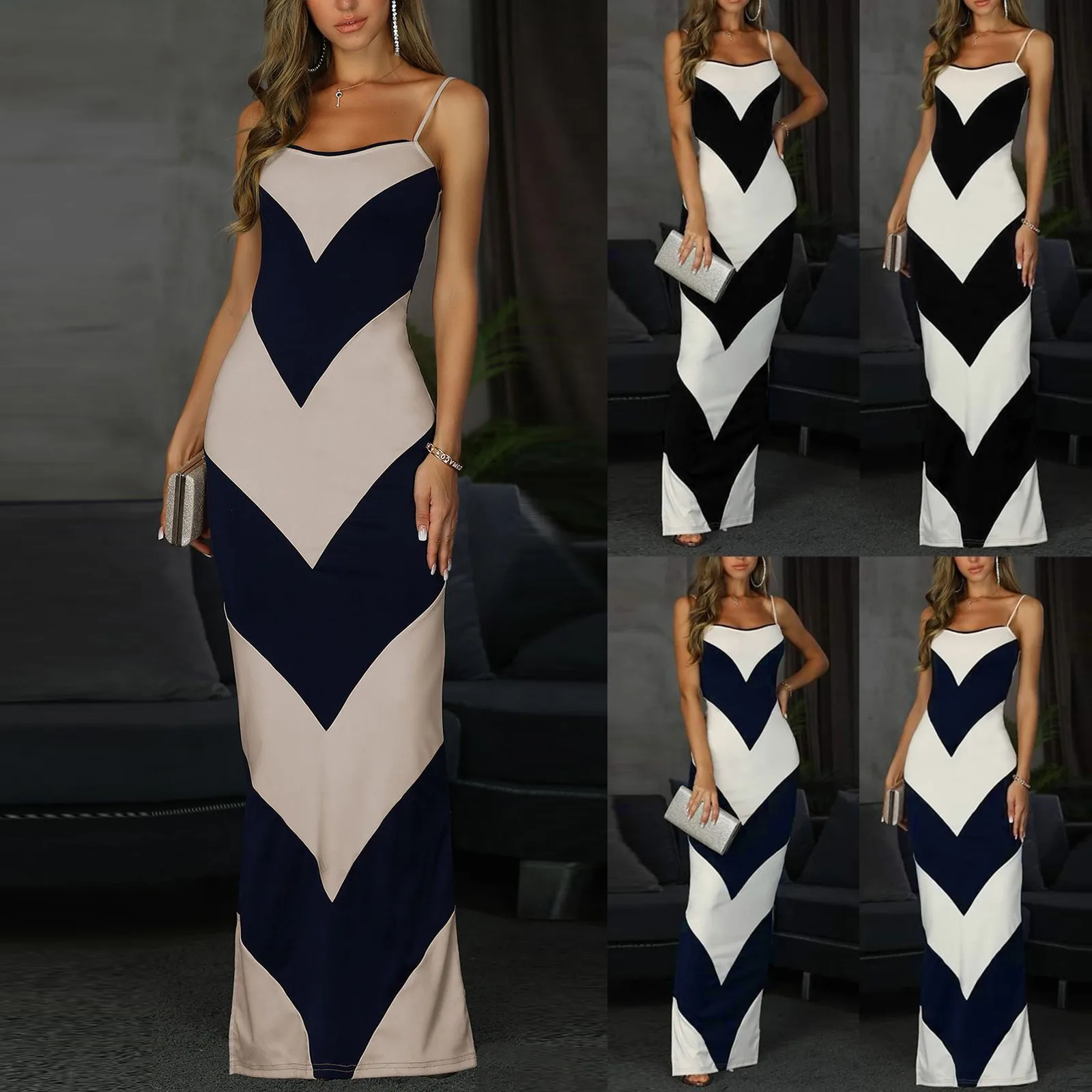 Платье женское длинное в полоску, пикантный элегантный свободный вечерний клубный сарафан без рукавов в стиле ретро, весна-лето 2021