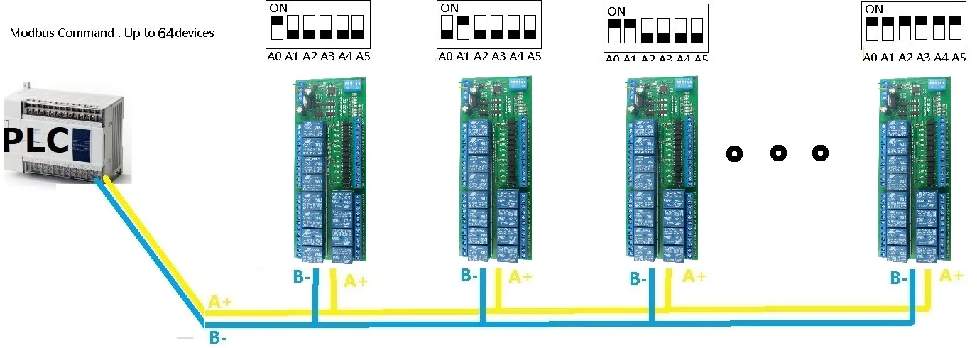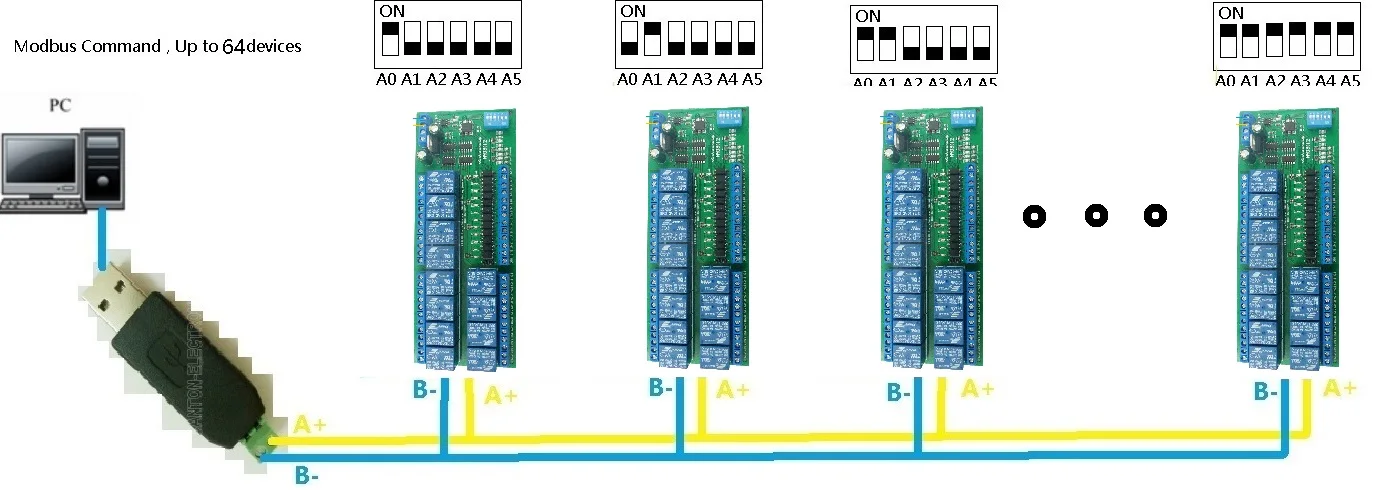 1: 12 В постоянного тока (12 В версия), 24 В постоянного тока (24 В версия)2: ток в режиме ожидания (все реле закрыты) 14ма, 1 релейный открытый 41ма, 2 реле открытые 69ма, 3 реле открытые 95ма, 4 реле открытые 122ма, 5 реле открытые 149ма, 6 реле открытые 174MA, 7 реле открытые 198MA,8 реле открытые 226MA3 12 фотоэлектрических изоляционных входных портов (низкий уровень активности NPN), входное и выходное отношение может быть установлено к связанному (по умолчанию) и не связанному через команды.4: ''open'''' close'' ''Momentary'' self-locking ''Interlock'' Delay ''блокировка между двумя каналами'' 7 команд5: команда MODBUS RTU, поддержка 03 06 16 функционального кода6: при помощи команды "delay" максимальная задержка составляет 255 секунд;7 команд MODBUS можно сделать последовательный гипертерминал (серийный помощник) или «MODBUS Poll'' вход;8 в режиме команды MODBUS, он может поддерживать до 64 устройств параллельно9 скорость передачи данных по умолчанию составляет 9600BPS. Скорость передачи данных может быть выбрана с помощью перемычек: 2400 4800 9600 19200BPS10 Размер: 180*72*20 мм (только печатная плата);184*88*42 мм (с din-рейкой)11 Вес: 190 г (только печатная плата);318 г (с din-рейкой)12 Максимальная нагрузка: 10A / 250VAC, 10A / 125VAC, 10A / 30VDC, 10A / 28VDC, 10A / 12VDC