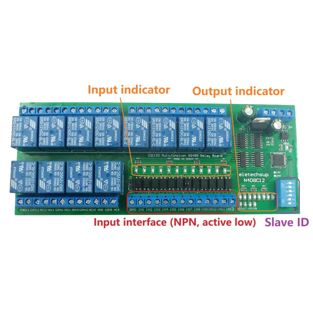 1 шт. 12 В постоянного тока/24 В 12 входов и 12 выходов RS485 релейный модуль