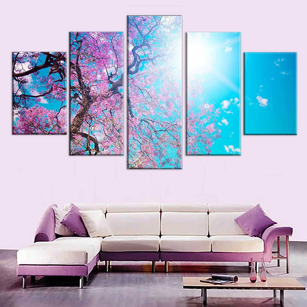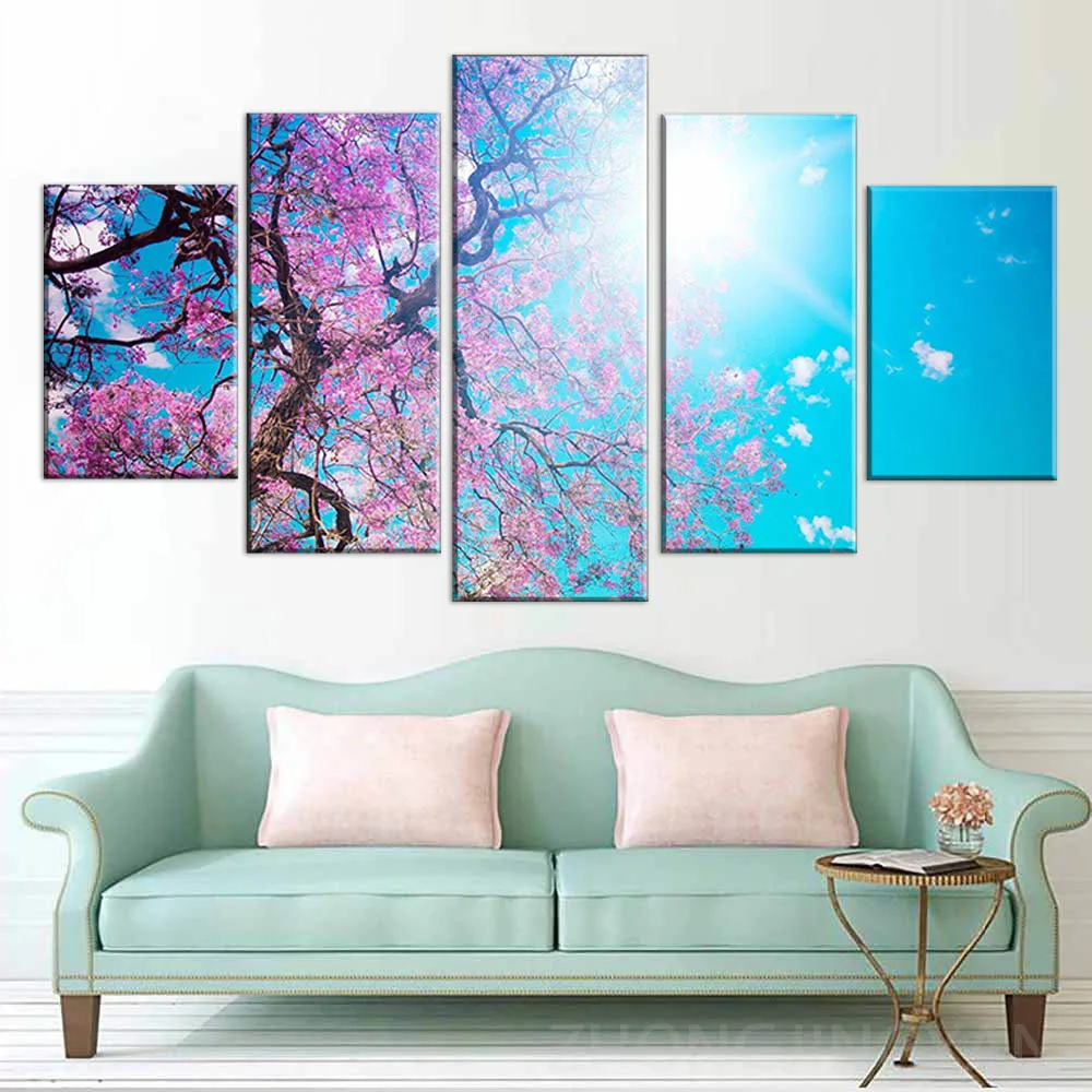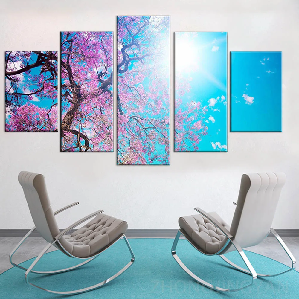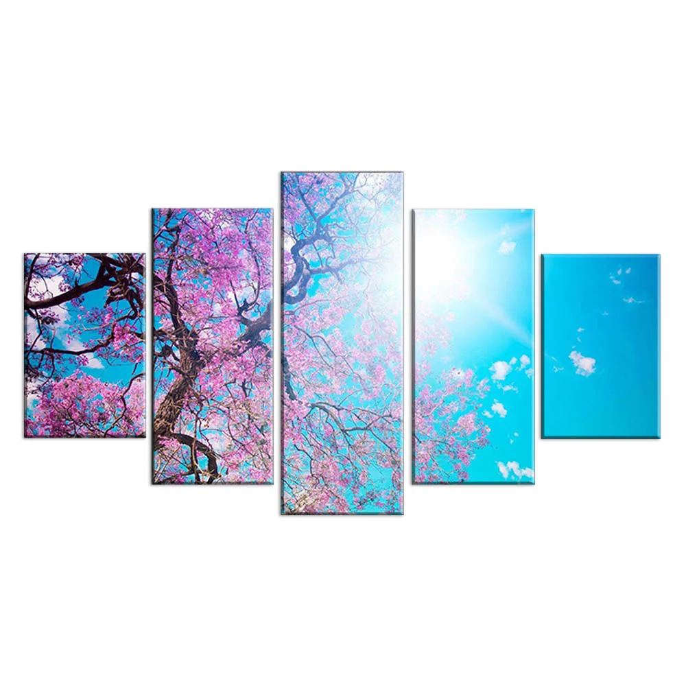 Модульная настенная 5 панелей Leto Sakura Solnce Luchi Oil Куадрос современные картины на холсте для гостиной интерьерный Декор от боли
