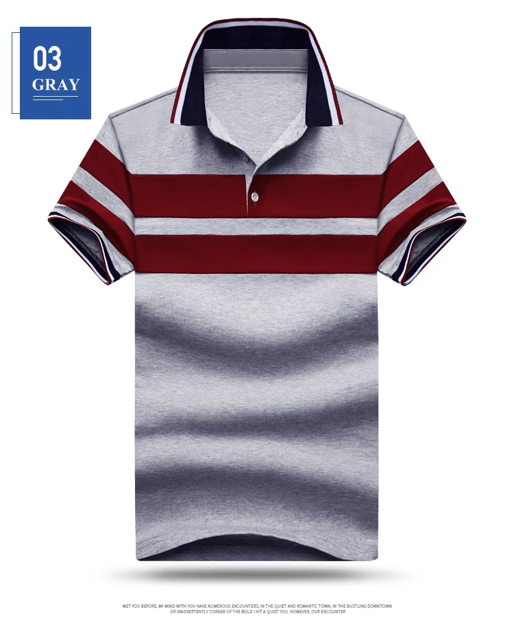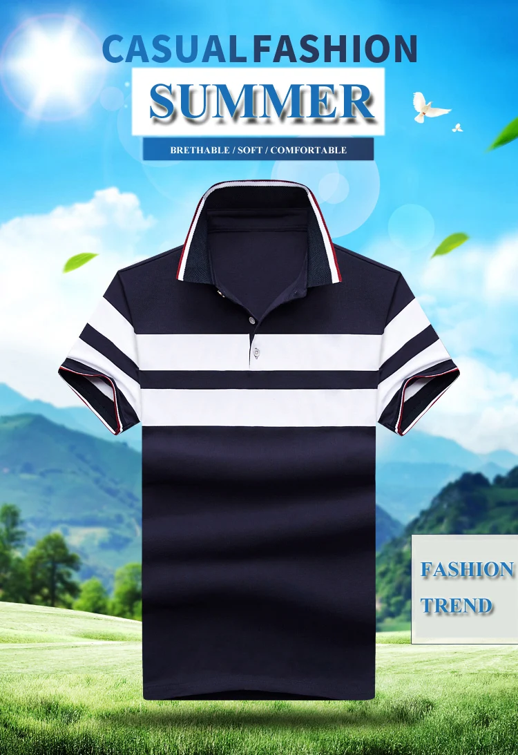 Рубашка-поло мужская с коротким рукавом, хлопок, Повседневная деловая, полосатая, 6