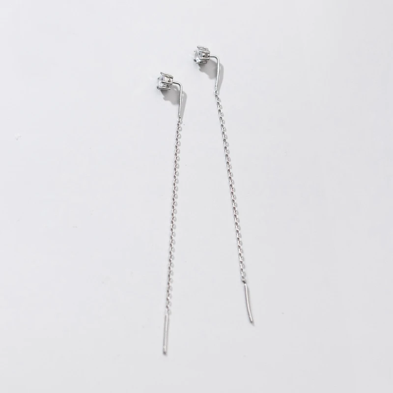 Женские серьги-протяжки из настоящего серебра 100% пробы с цирконием, длинная цепочка, серьги-подвески, E0636, 925