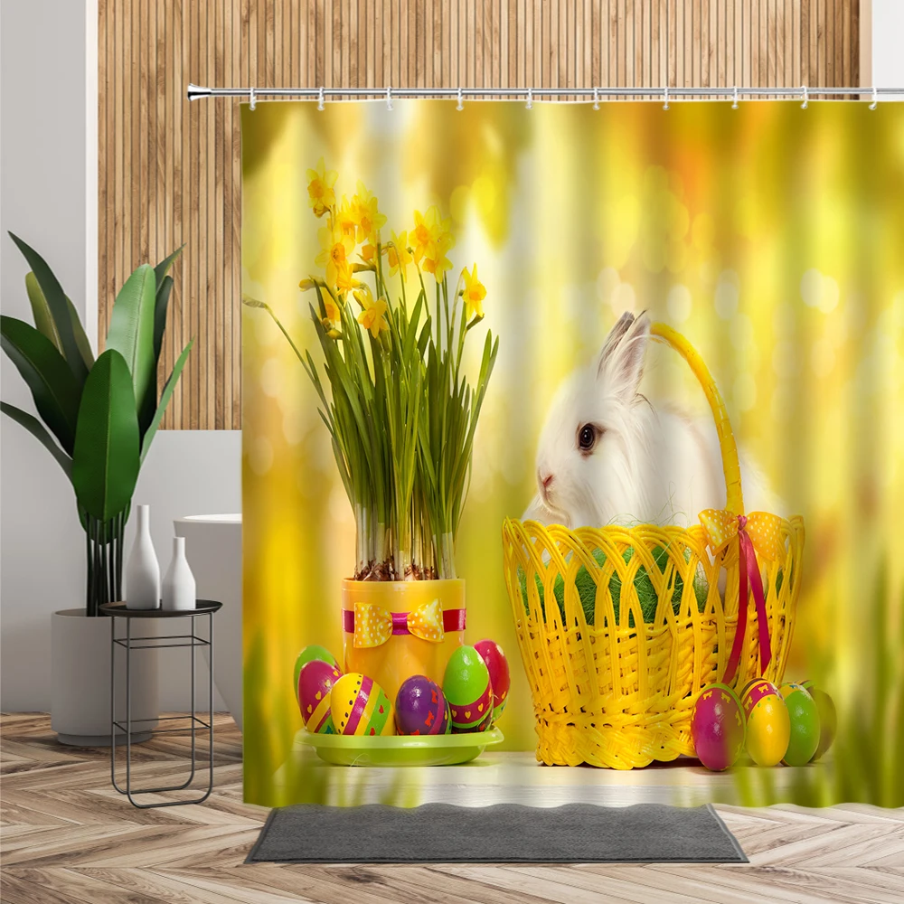 Пасхальная детская занавеска для душа, декор в виде кроличьего яйца для ванной комнаты, аксессуары для ванной комнаты, креативный праздничный тканевый фон для фотографирования, водонепроницаемые занавески