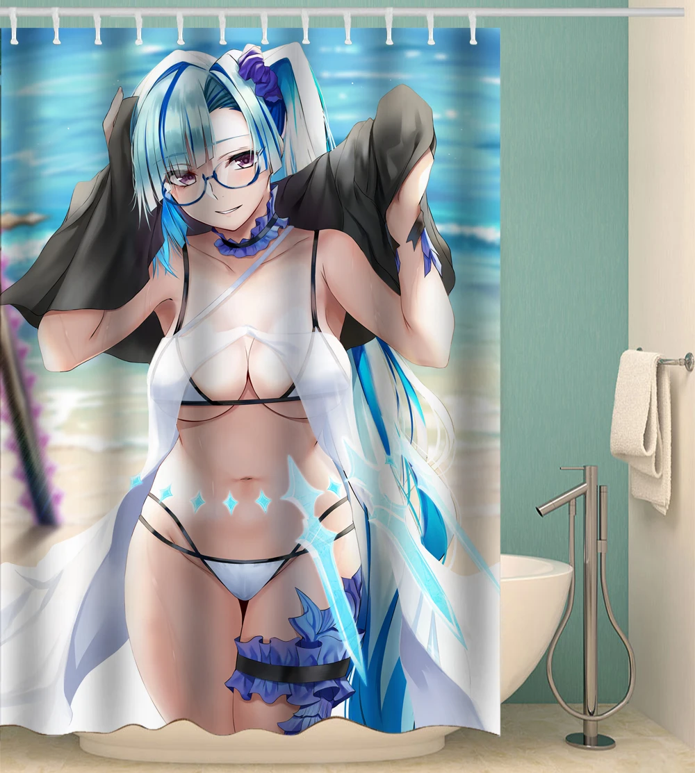 Занавеска для душа с большой грудью и большим задом для девочки с п...