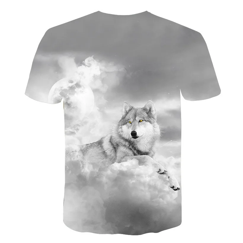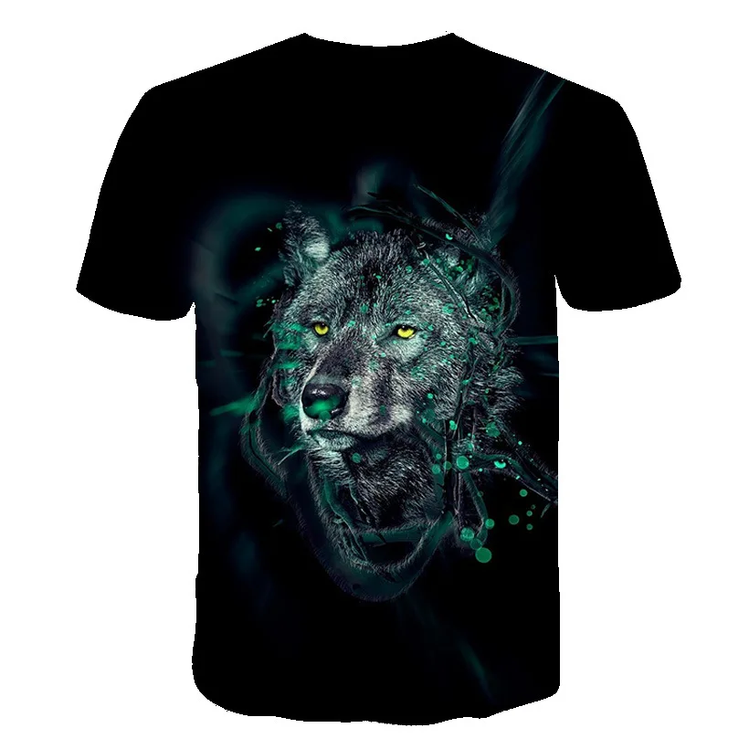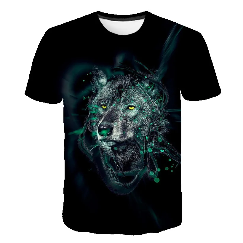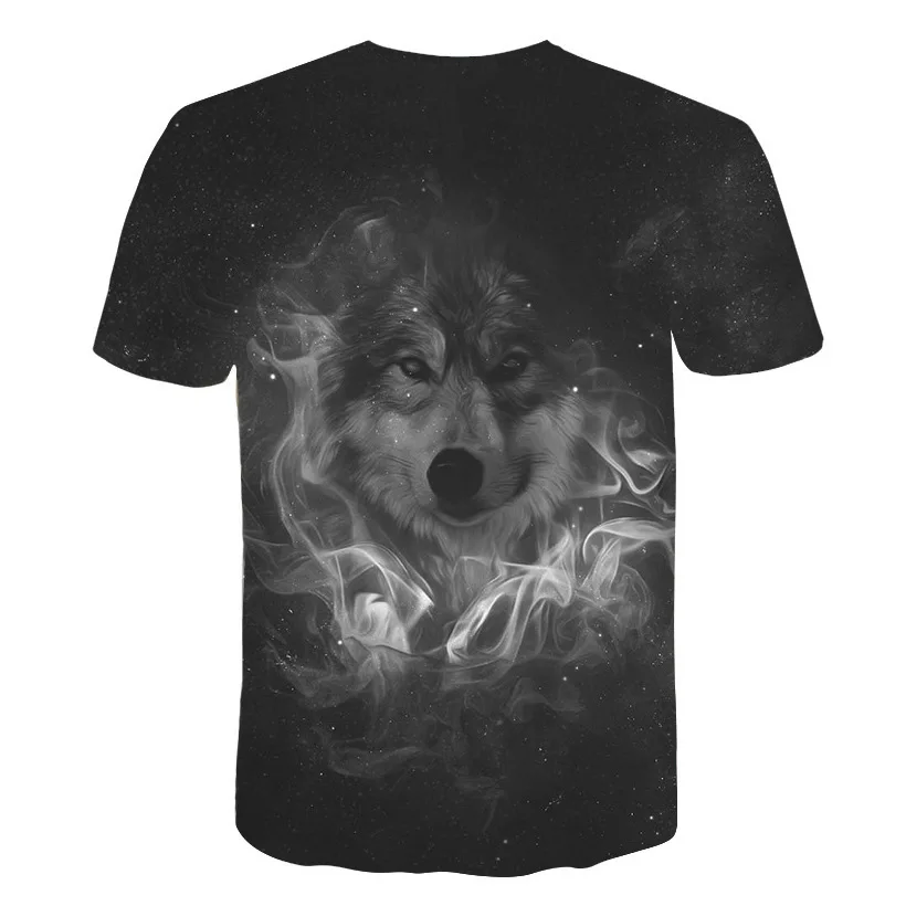 Мужская футболка с 3D-принтом волка, черная футболка с коротким рукавом и круглым вырезом, уличная одежда, повседневные топы, 2020