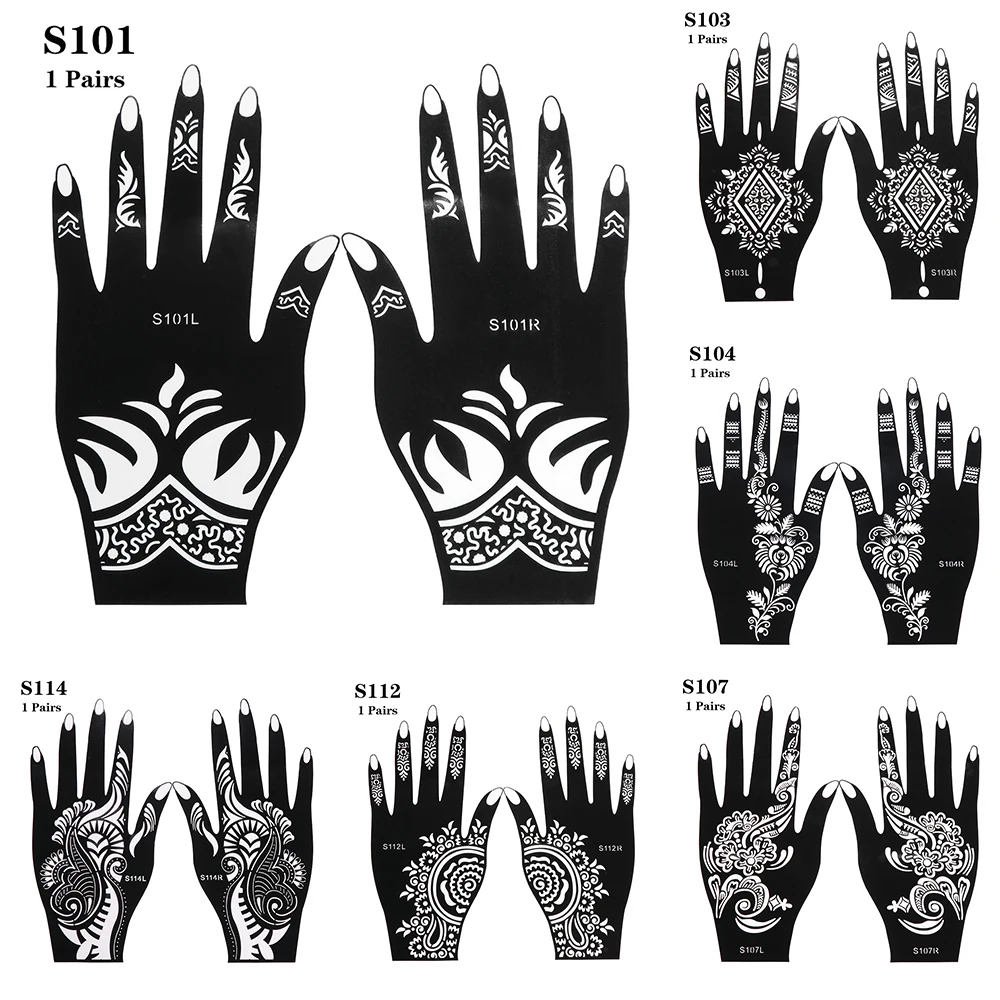 Профессиональные трафарет для татуировки хной Временные татуировки, боди-арт, наклейки, свадебные инструменты, индийский цветок, шаблон татуировки, 2 шт.