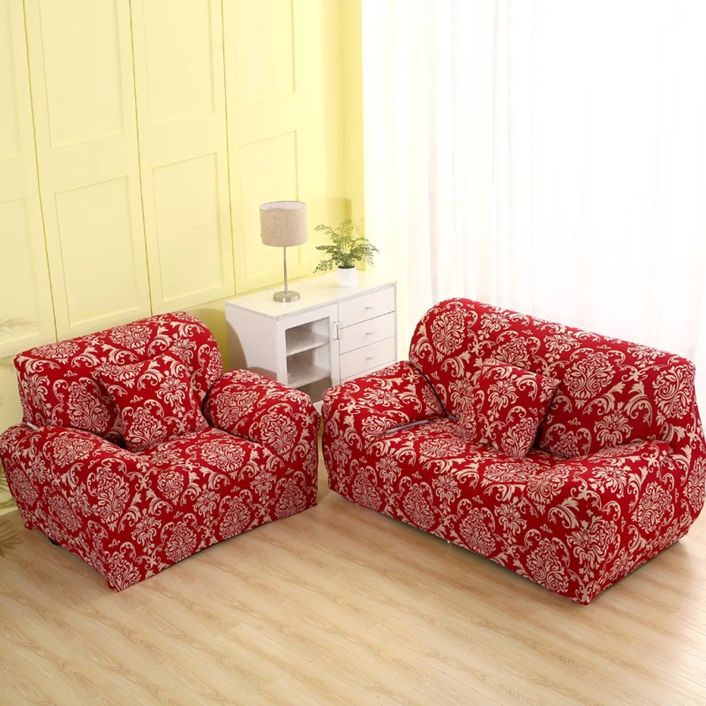 Эластичный Нескользящий чехол для дивана в гостиную, мягкий чехол из спандекса, L-образный растягивающийся чехол для угловой кушетки, красного и золотого цвета, на 1234 сиденья
