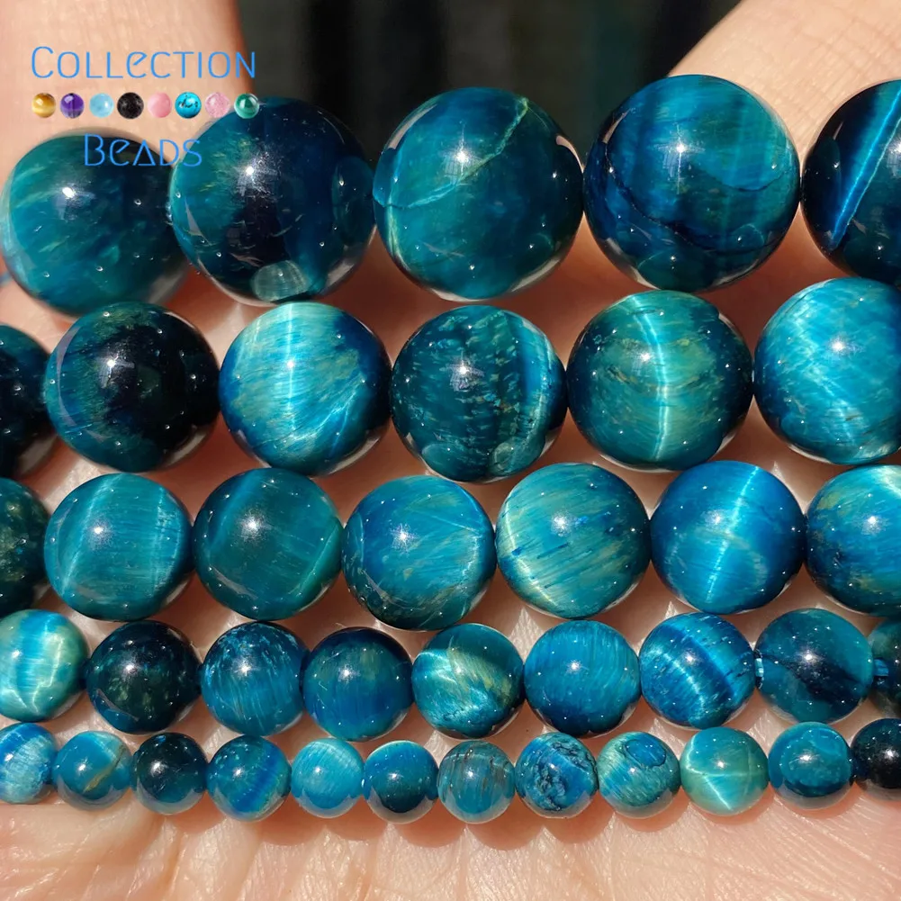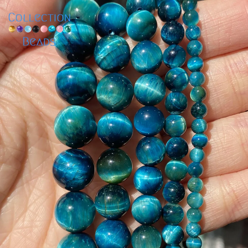 Натуральный Синий тигровый глаз, круглые бусины для изготовления ювелирных изделий, 4-12 мм, аксессуары для браслетов Diy 15"