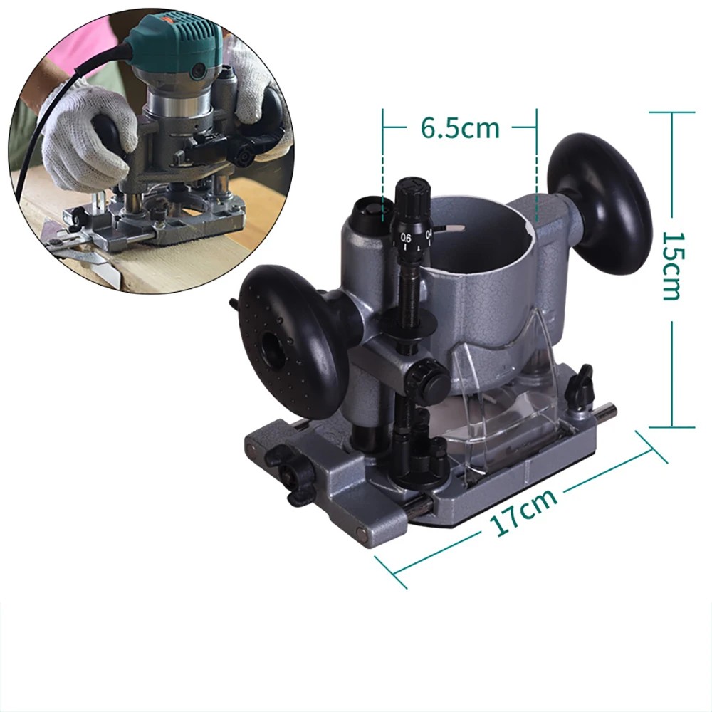 Название продукта: основание электрического роутераМатериал: металлПрименение: используется с электрическим роутером, фрезеровщиком, обрезкой, шлифованием, гравировкой и другими функциями.Примечания: включает только базу, а не Электрический роутер.