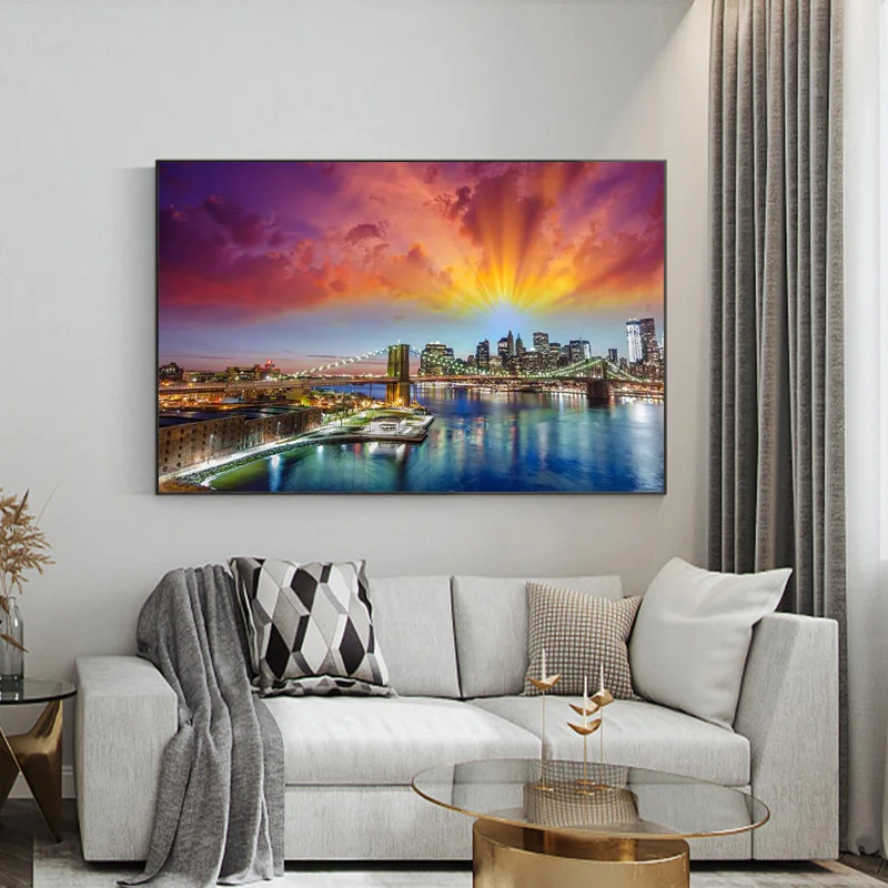 Бруклинский мост ночной вид пейзаж живопись холст настенные картины художественные плакаты и принты Нью-Йорк Картины домашний декор
