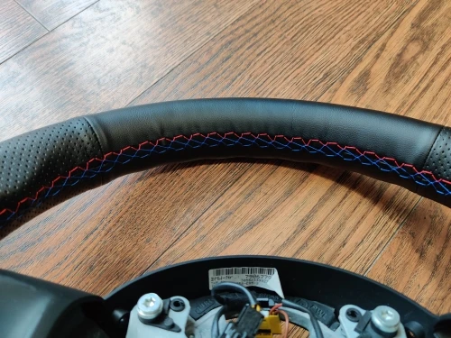 Сшитая вручную черная оплетка рулевого колеса из искусственной кожи...